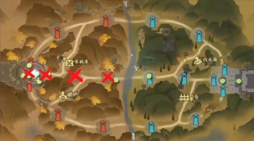 资源团以碎梦和素问为主,主要在我方资源野区刷野,然后把资源搬回大旗处,利用资源来进行反败为胜也不是不行的。