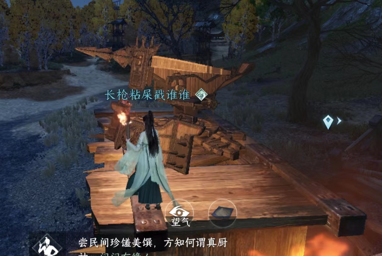 烹饪旁边山崖挂着腰牌。还可以获得一个装扮【金鱼戏】