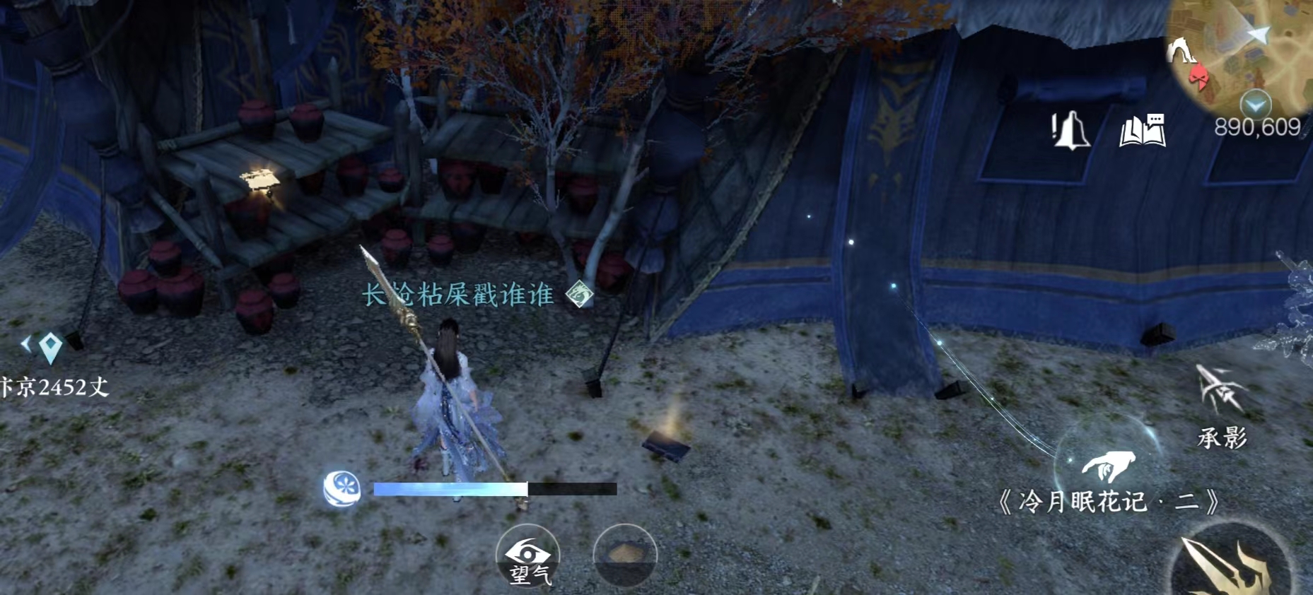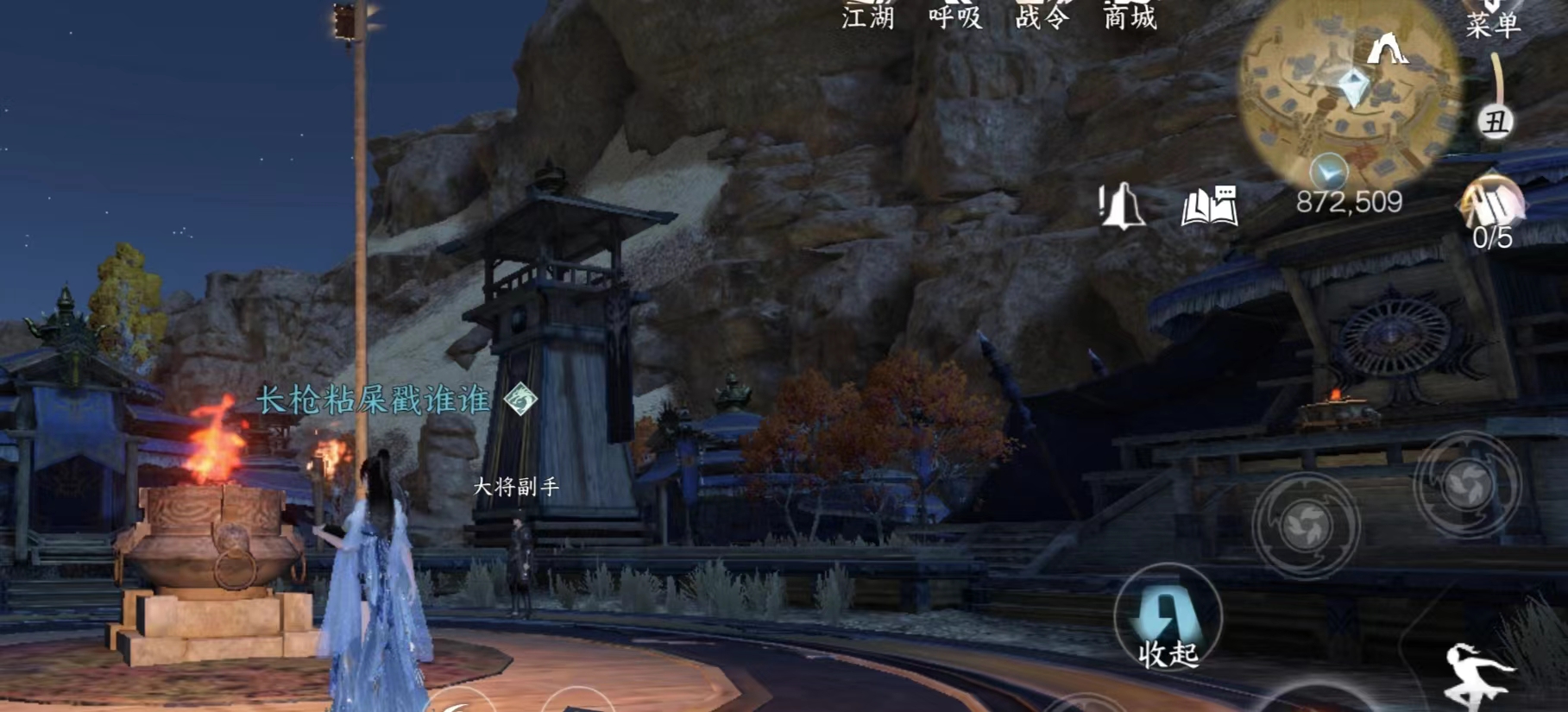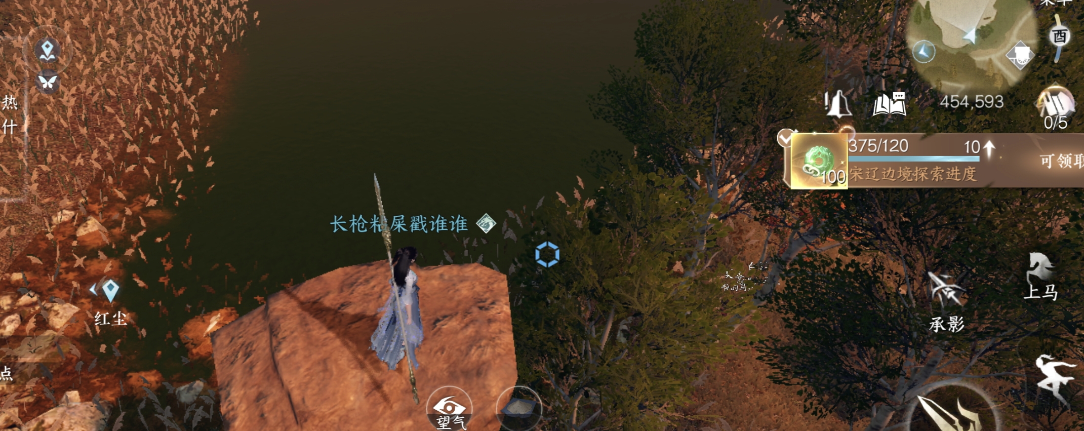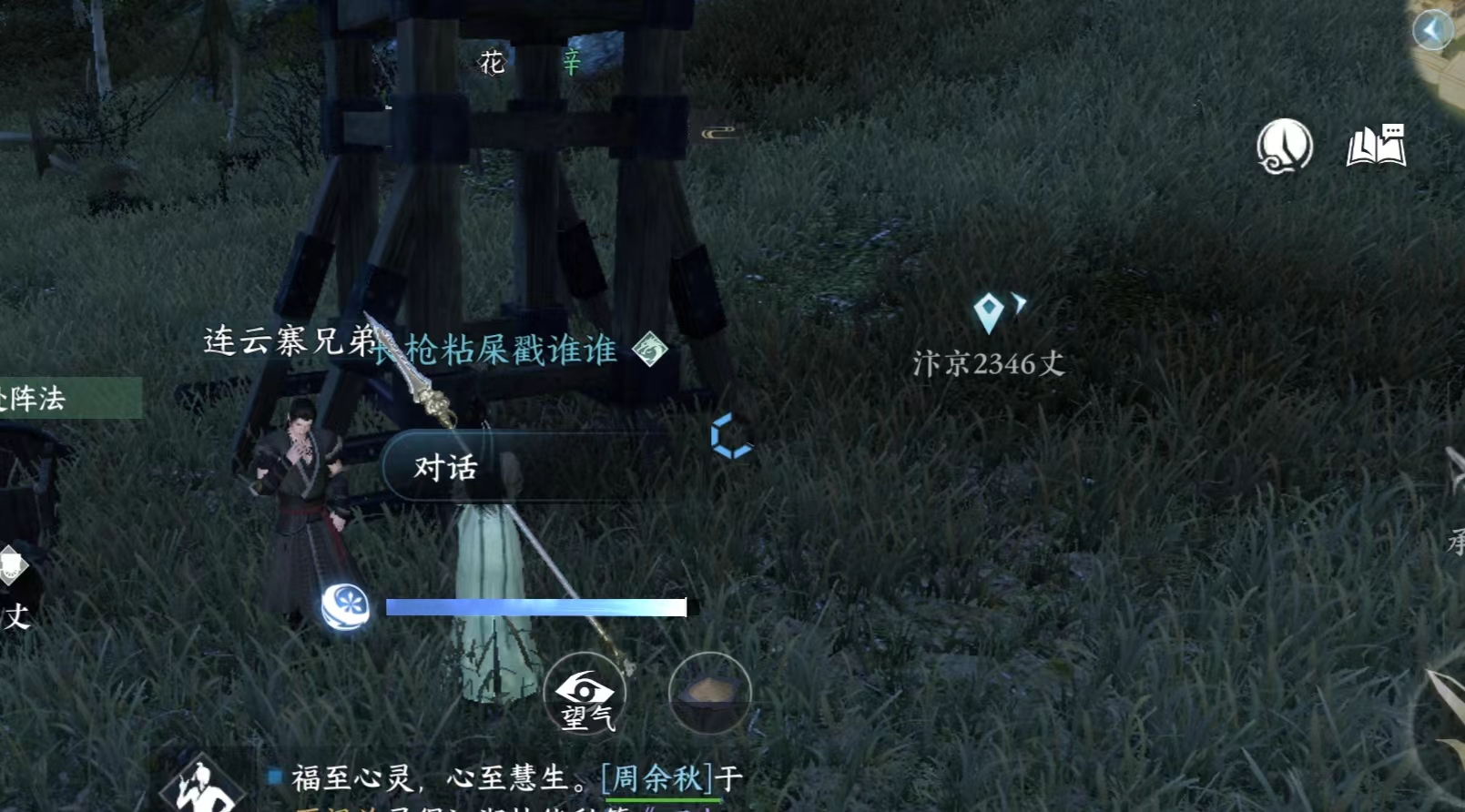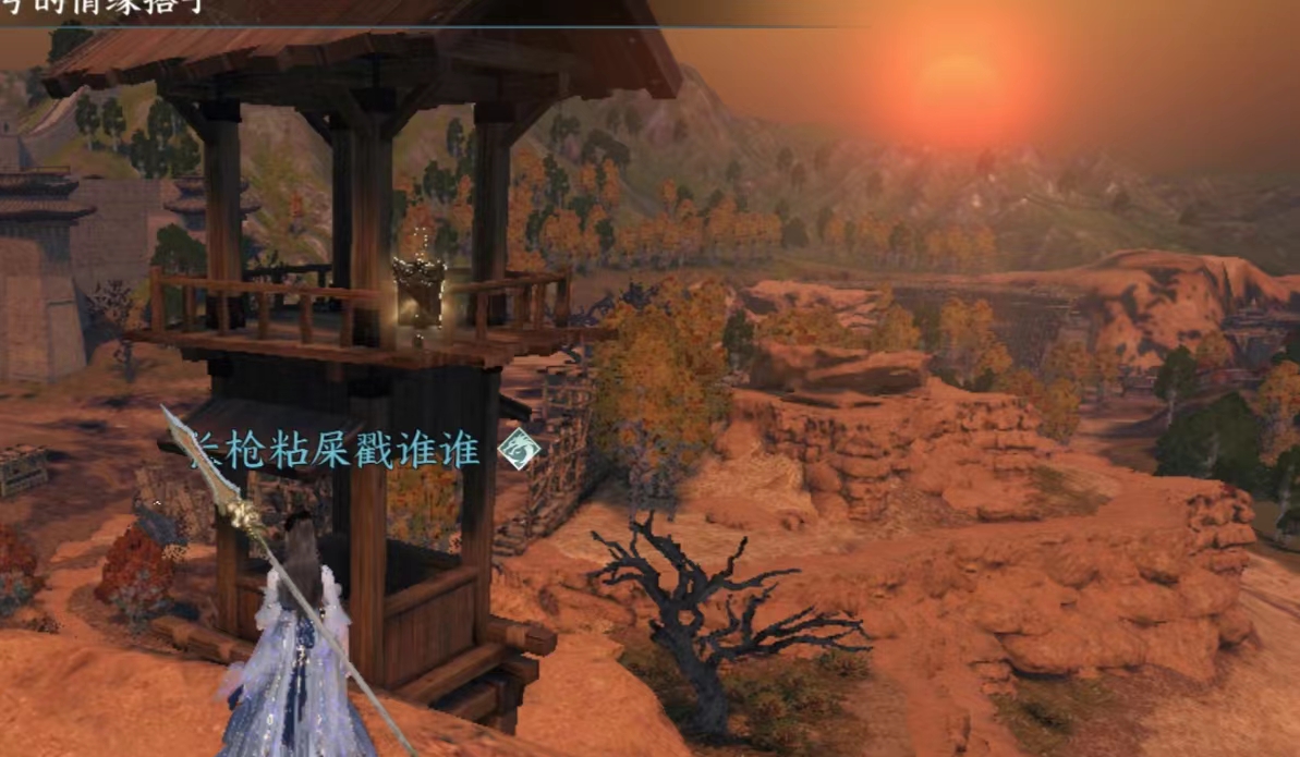 NPC连云寒旁边的瞭望台。注意这个有个阵法会封脉,无法爬上去,需要从地形比较高的远处冲刺助跑使用轻功上去。