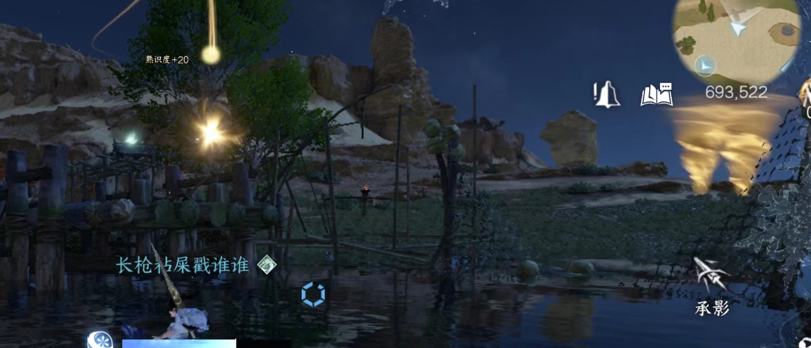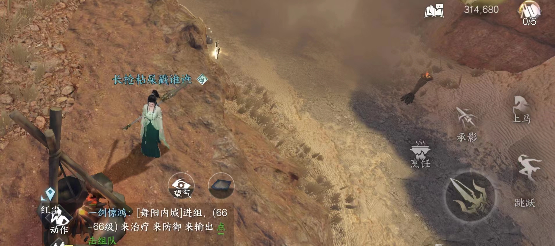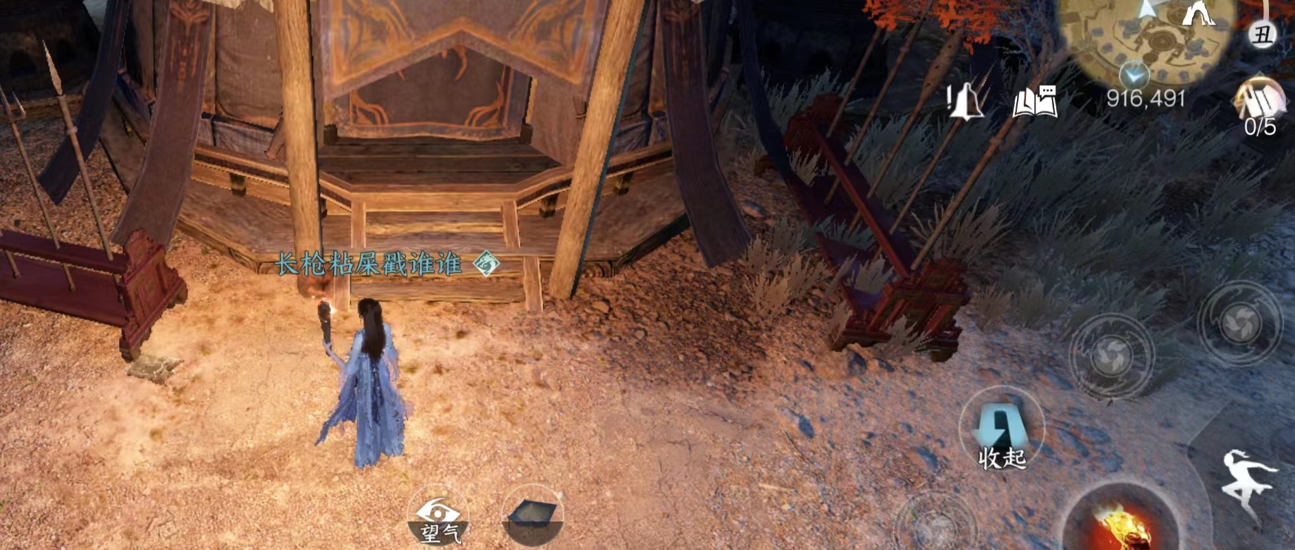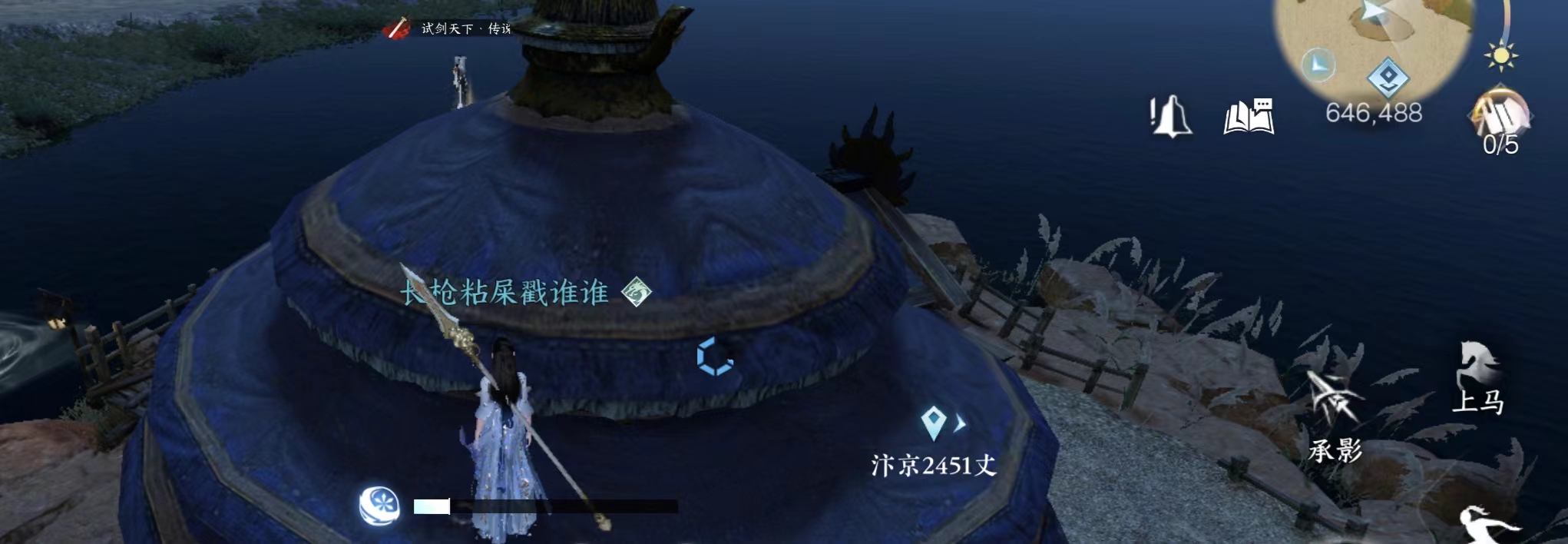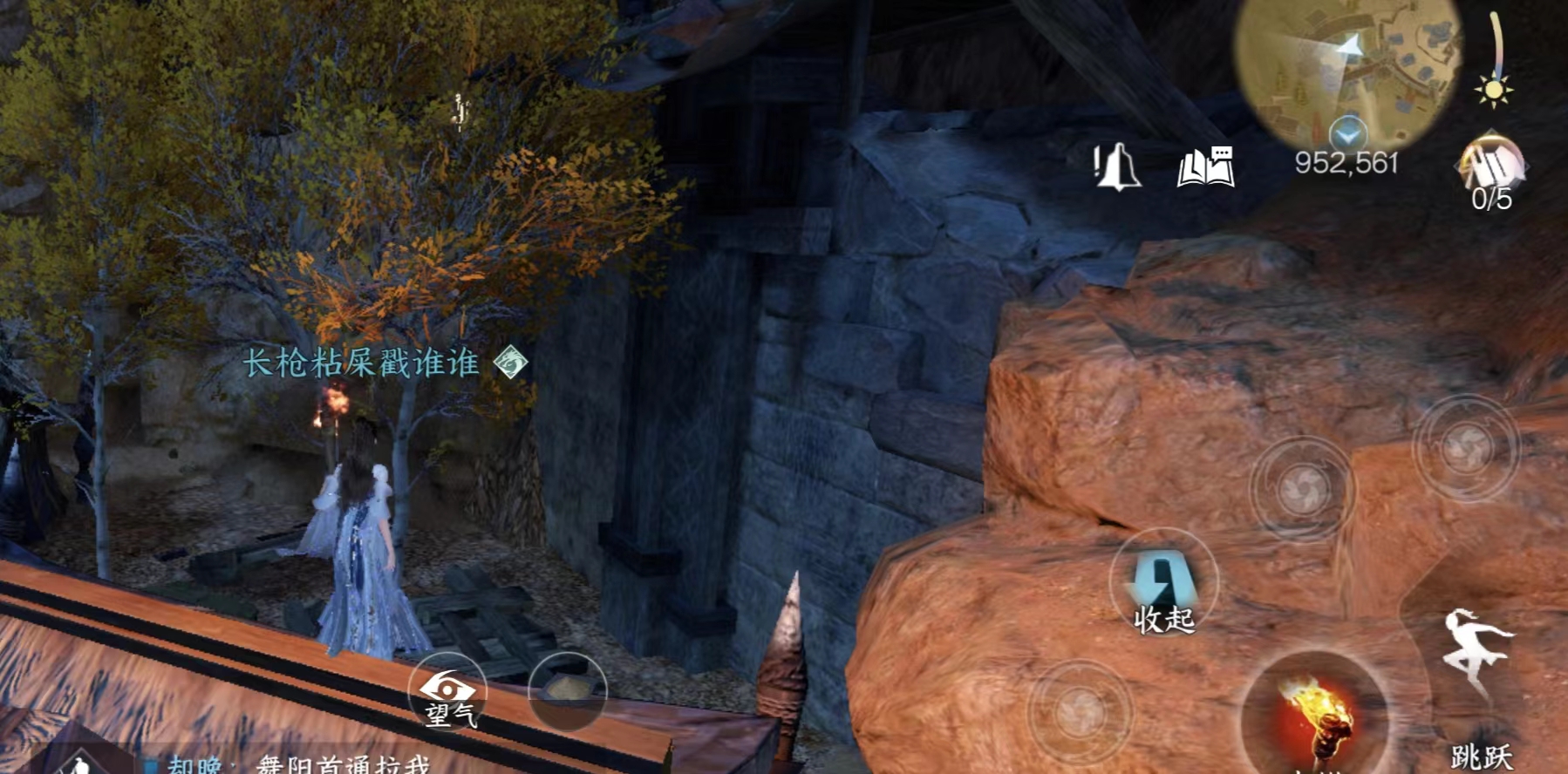 NPC连云寒旁边的瞭望台。注意这个有个阵法会封脉,无法爬上去,需要从地形比较高的远处冲刺助跑使用轻功上去。