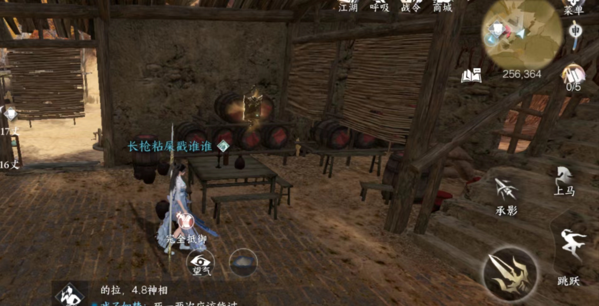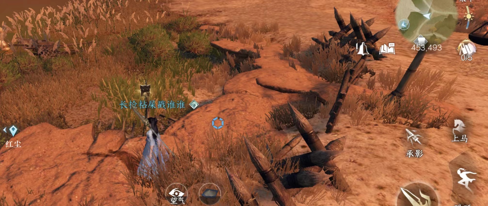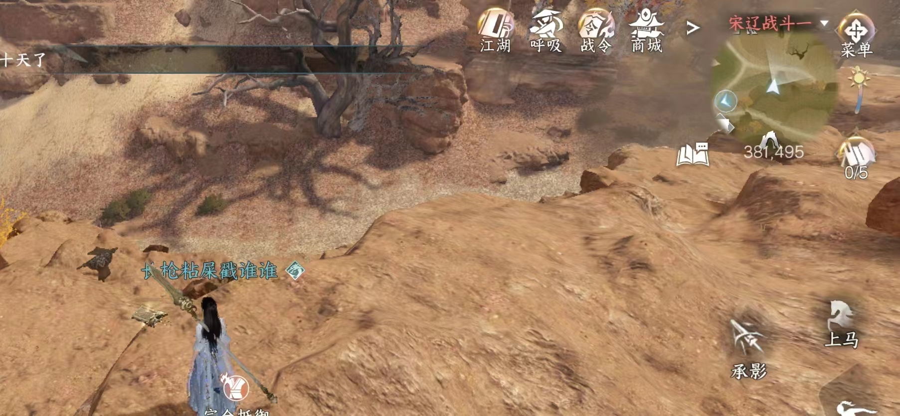 月亮湾的蒙古包顶上。注意这里有敌人会攻击你。