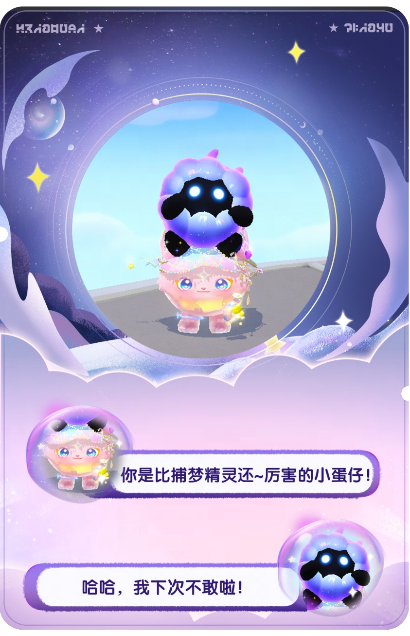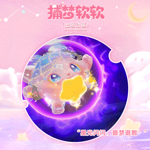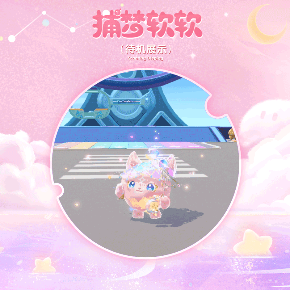 收集星光讲究一气呵成跳起抓住存储一个动作也不含糊捕梦软软高高地跳起脚下浮现出彩虹色的星月纹章星星围绕,光芒流转粉紫色的光晕迸射而出今日的第一颗星收入囊中!“捕捉星星、传播美梦,是我们捕梦精灵的天职~”