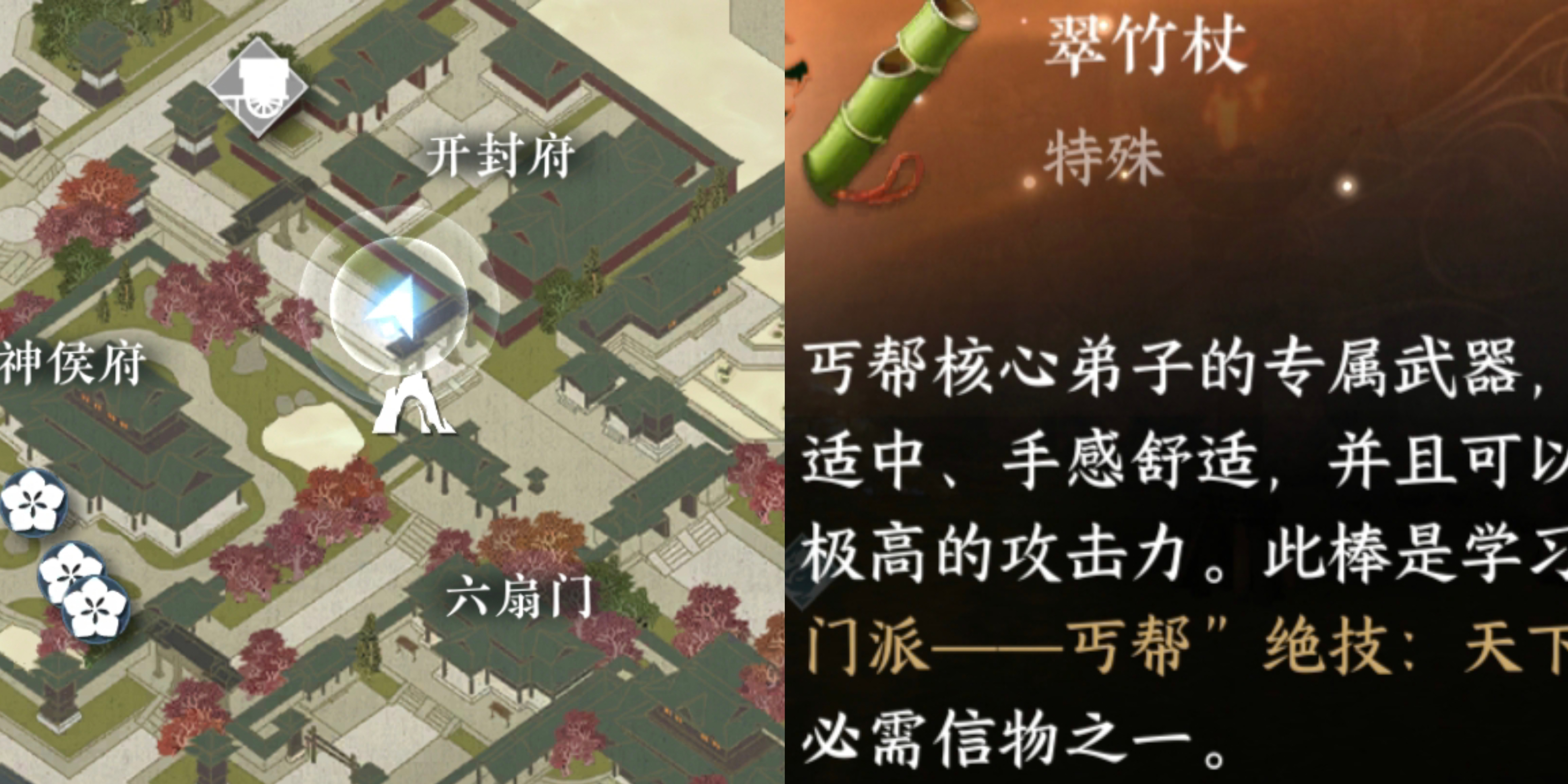 在汴京坐标634.800处【神侯府】和【开封府】的中间有个神秘洞窟名为【藏金洞】。进入洞中会先遇到一批小混混可以选择无视或者先击杀。在往下走会遇到boss包藏金。击杀后就可以获得一个大宝箱,打开后就可以获得丐帮信物了。