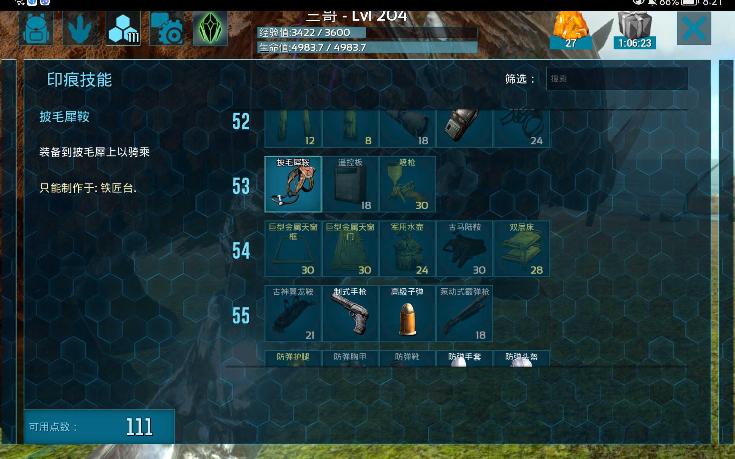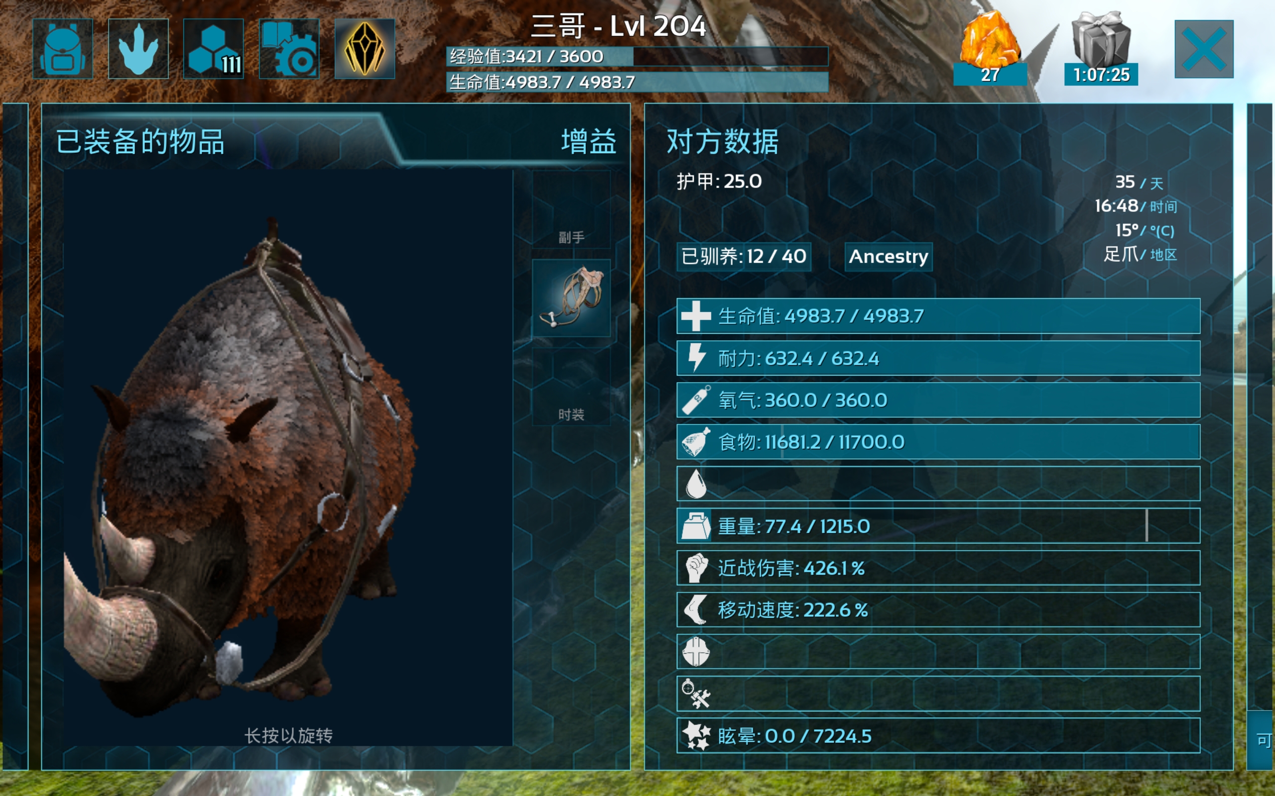 生物介绍—披毛犀浮云玩游戏发布于 2023-07-12关注哈喽大家好,我是你们的浮云啊,今天抽空在新存档里训了一只披毛犀 披毛犀可不简单,用了我将近50发毒箭才射晕的,披毛犀属于食草龙,可以喂各种果子和蔬菜,也可以喂它吃的饲料(上等饲料,会驯的快些) 起身的披毛犀属性也很OK,血量很厚,伤害也很高(尤其是冲撞起来后的伤害特别高),简直就是方舟推土机啊,而且负重也算很高,是一个很好的驼运龙,而且也可以采果子和茅草木头等。 披毛犀的鞍可以在53级解锁,也不算太难造。总的来说披毛犀综合能力很不错,很建议驯的龙(´ε`;)