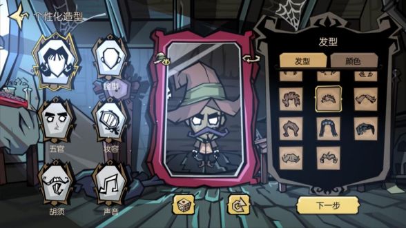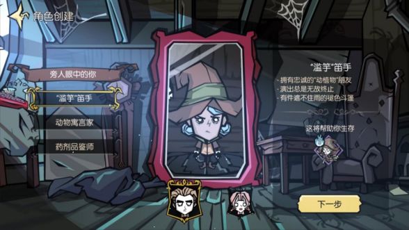剧情动画结束后进入创建角色界面,可以选择角色及性别。当前《饥荒:新家园》中共设有3个不同角色,每个角色初始三维(生命/饥饿/理智)均一致为140,但分别带有不同的身世特质,分别是: