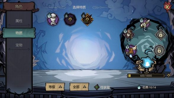 1. 特质:除角色身世特质以外,新手期可以通过冒险指南与探险启程活动分别获得“短跑健将”和“紧急包扎”两个新特质,之后则可以到沙盒世界结识沃尔夫冈、温蒂等原作角色,完成他们的任务挑战后可以解锁更多特质