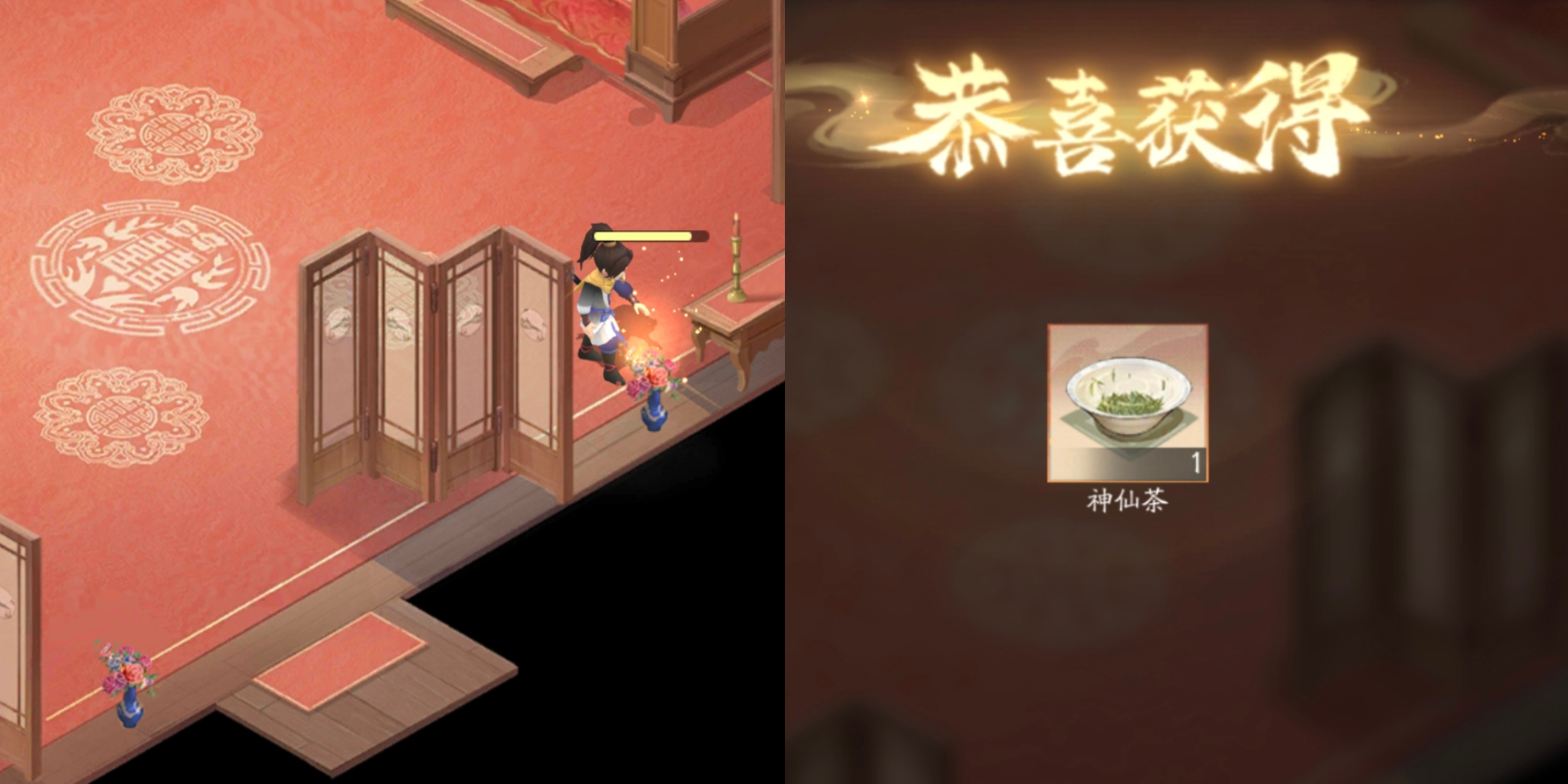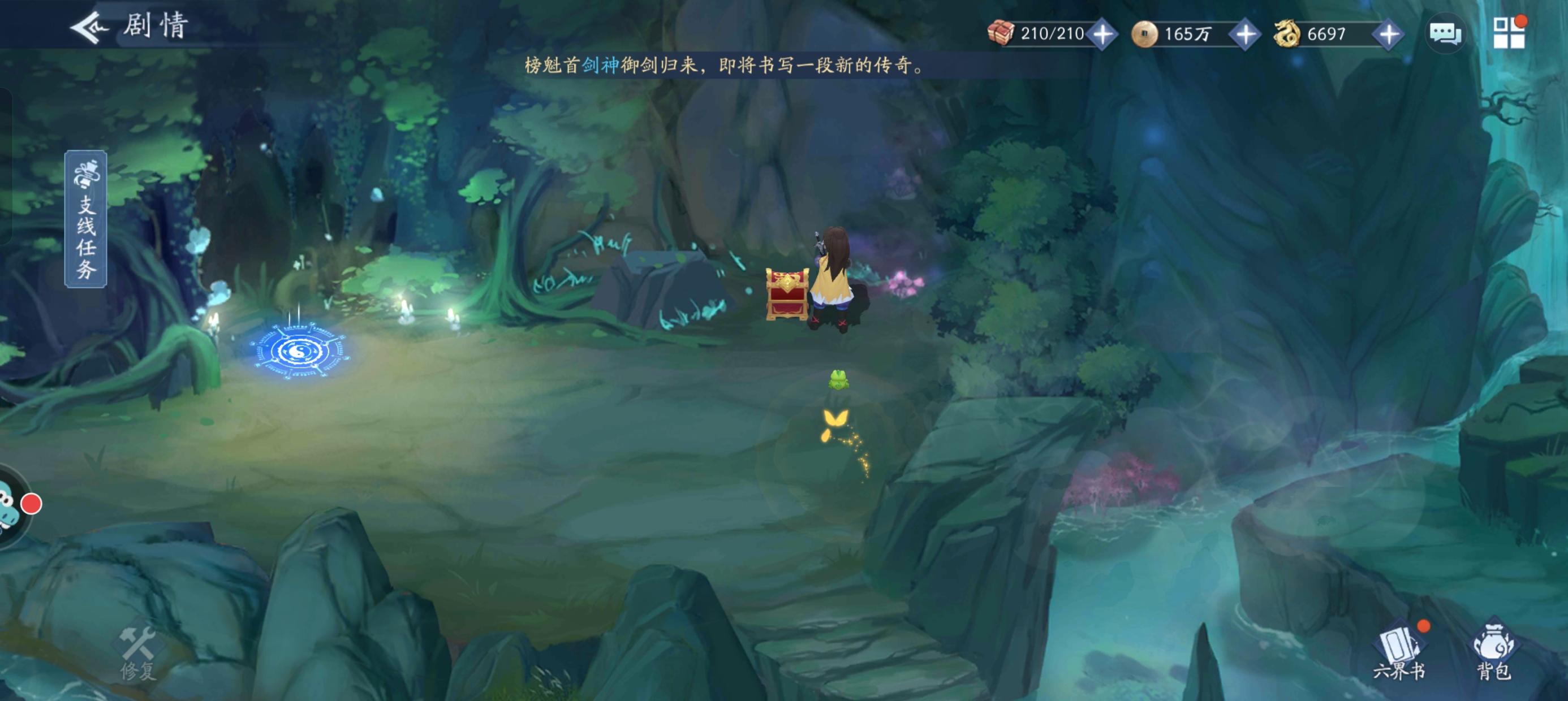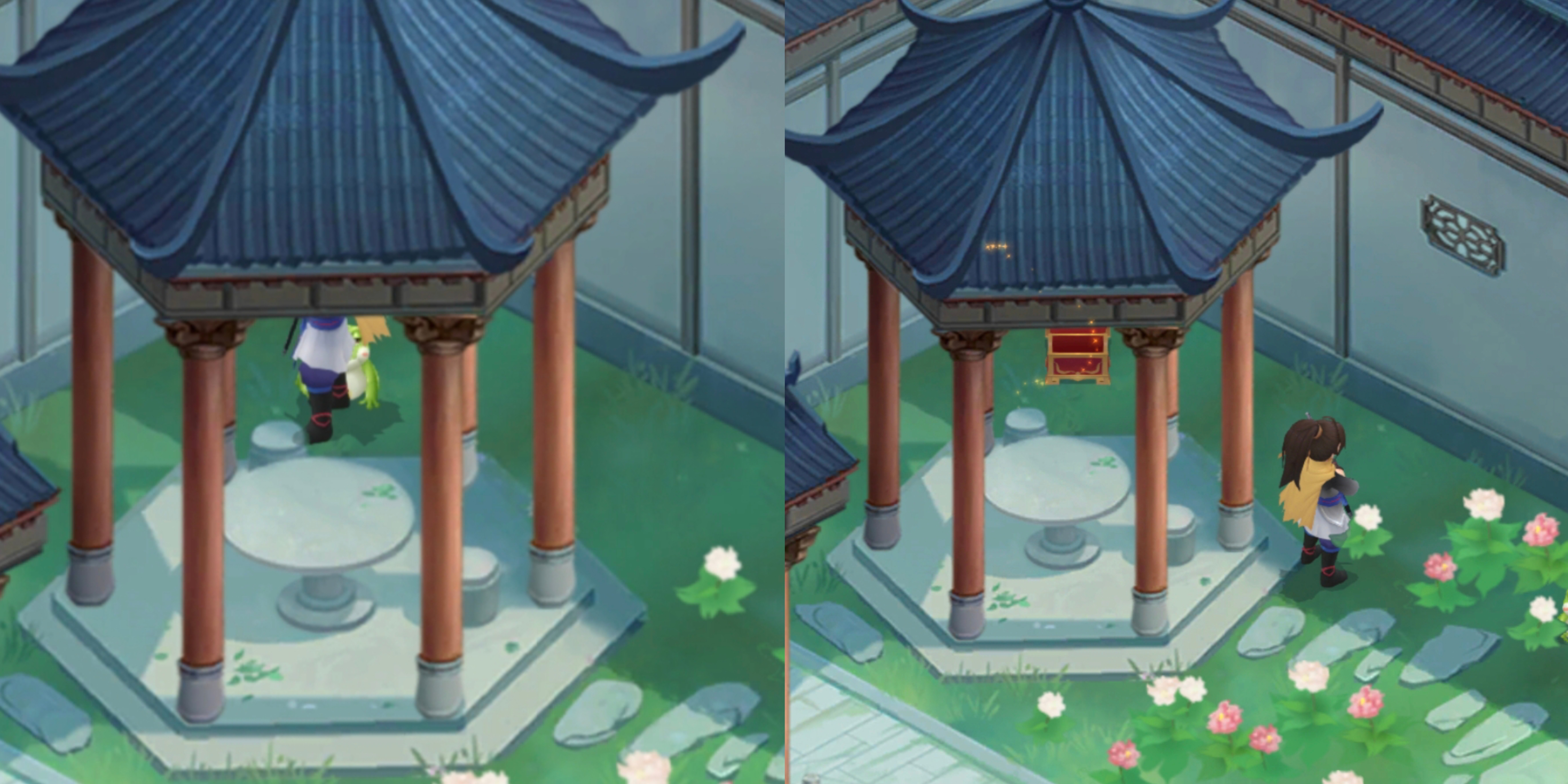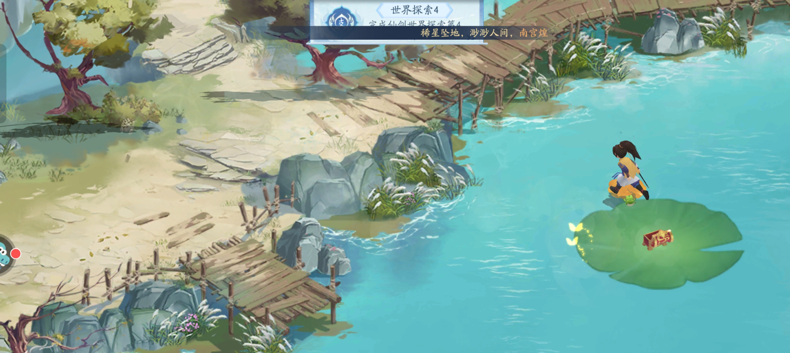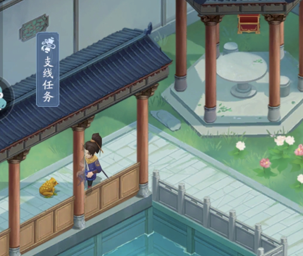 1:第一个宝箱【宝箱】尚书府后院的亭子处有一个大青蛙,点击青蛙🐸,青蛙会跳走,宝箱就显示出来了。