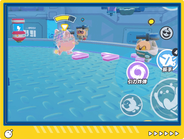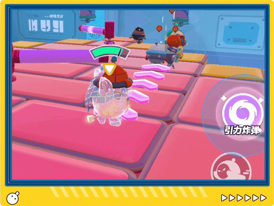 争霸赛场见前方一群敌蛋似在挑衅皮蛋也不是好惹的蛋!找准时机,投掷、引爆——来尝尝引力炸弹的威力!