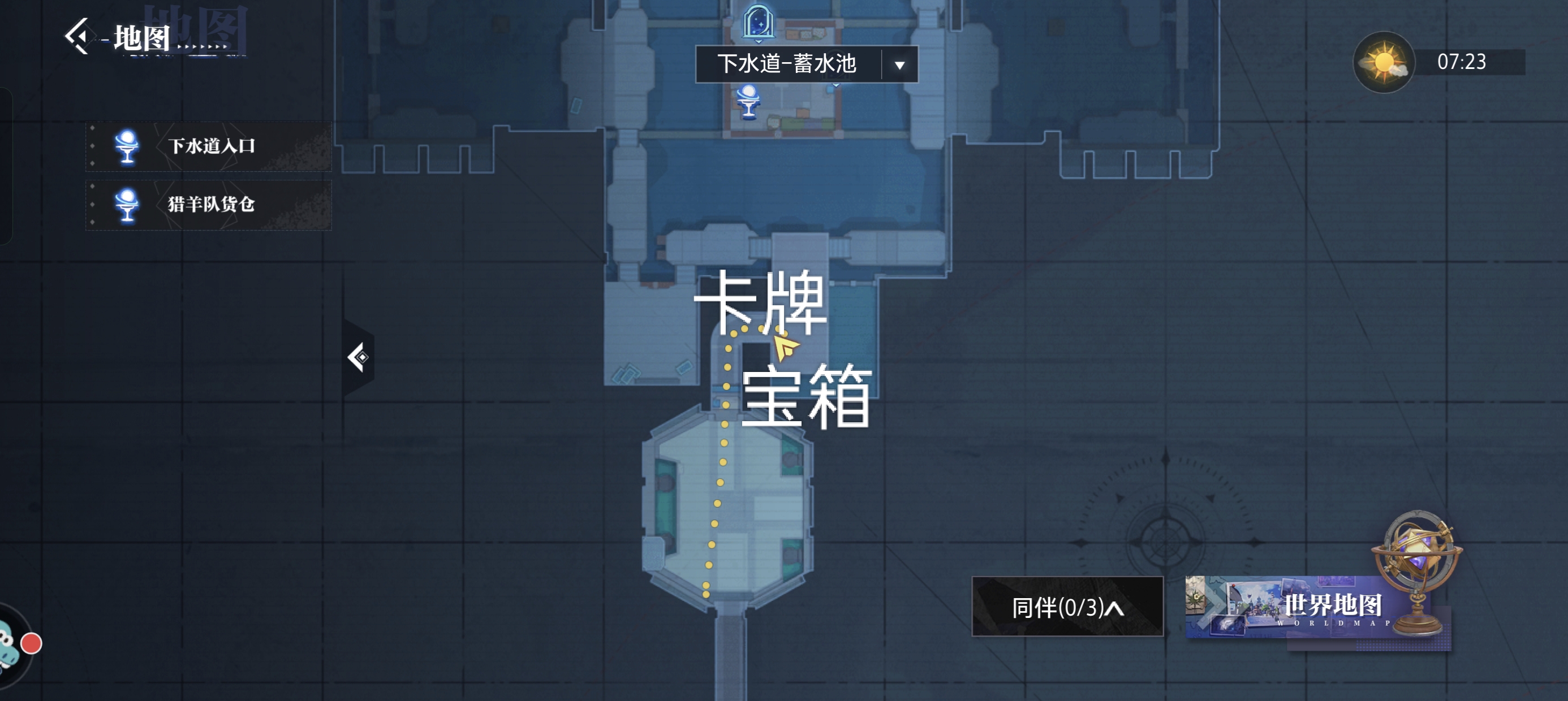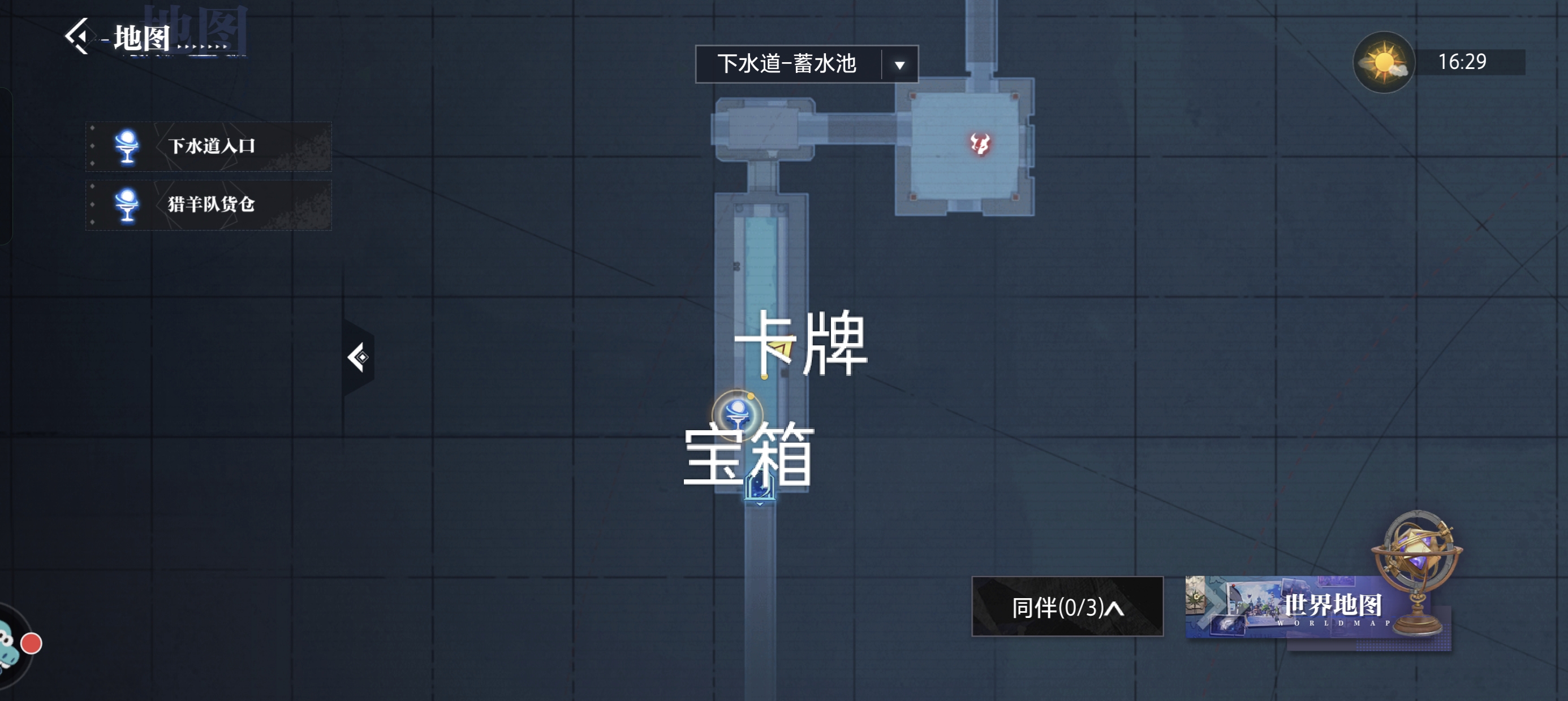 下水道入口的传送点后方有个宝箱,前方有个黯光卡牌。