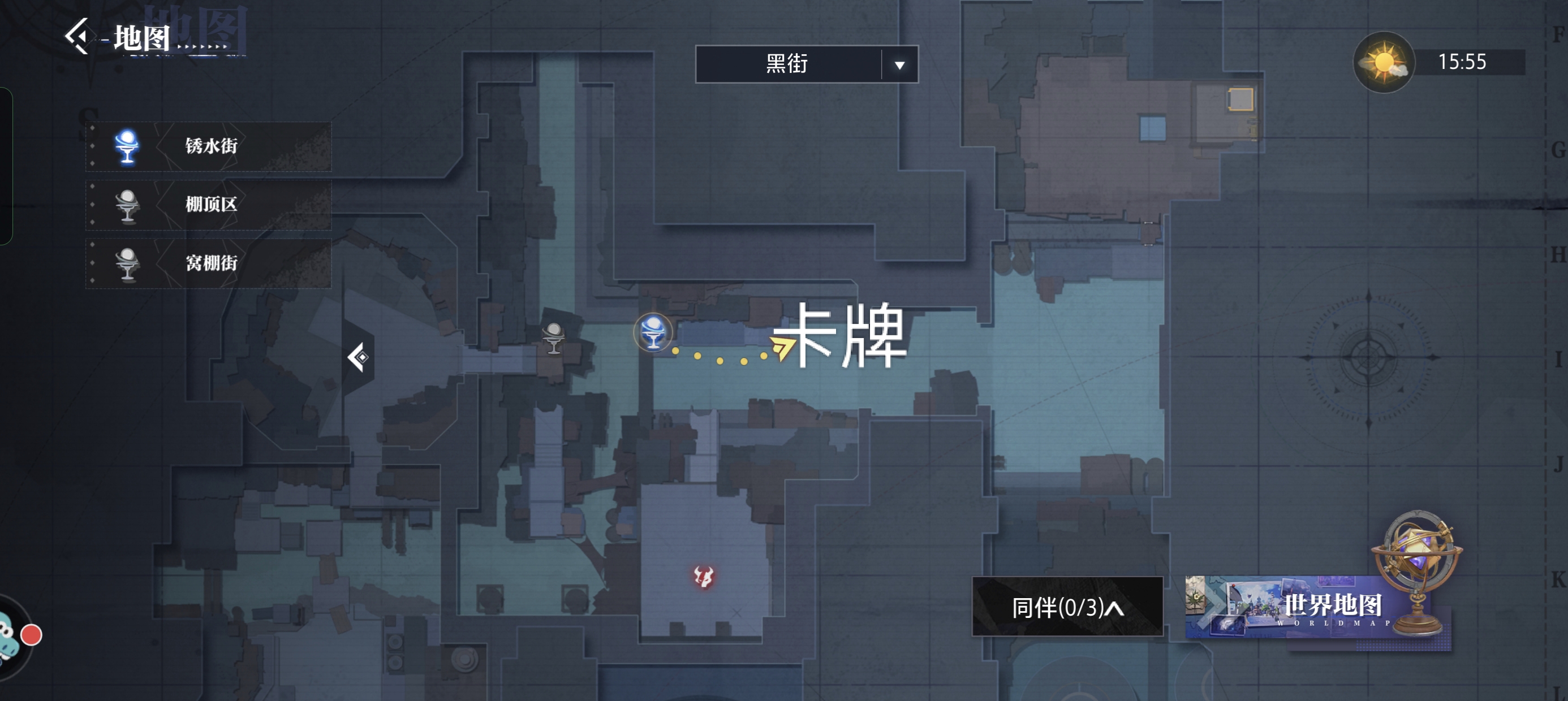 黯光卡牌和宝箱主要分布在莱茵城的【地下水路】和【黑街】这2个地图。