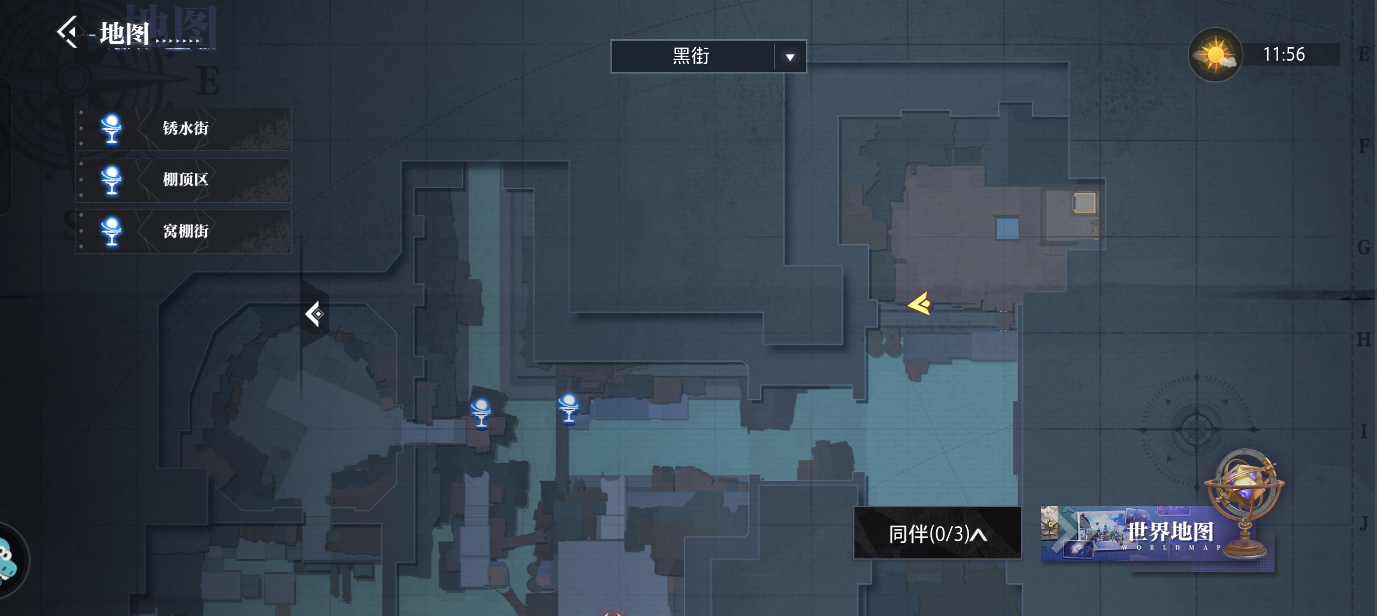 点击世界地图选择孤儿帮,来到孤儿帮以后,进入到黑街。
