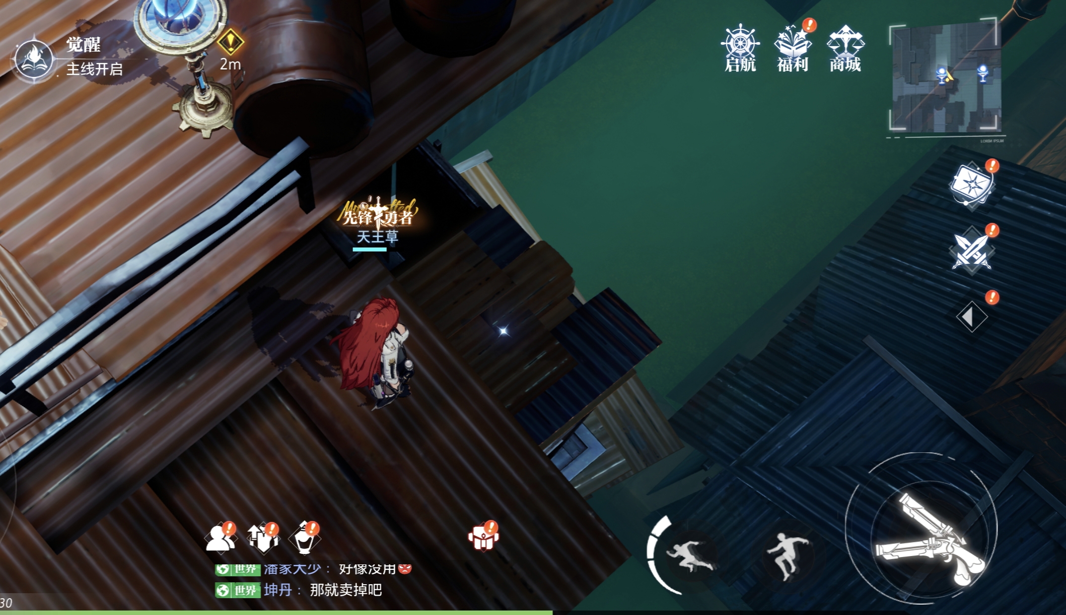 第6张卡牌和第2个宝箱位置。从棚顶区传送点出来后会遇到一群敌人,清理完敌人,在我下方图的标记有个卡牌和宝箱,卡牌需要跳到上面的围栏处拿,宝箱就下小号的铁箱子里面。