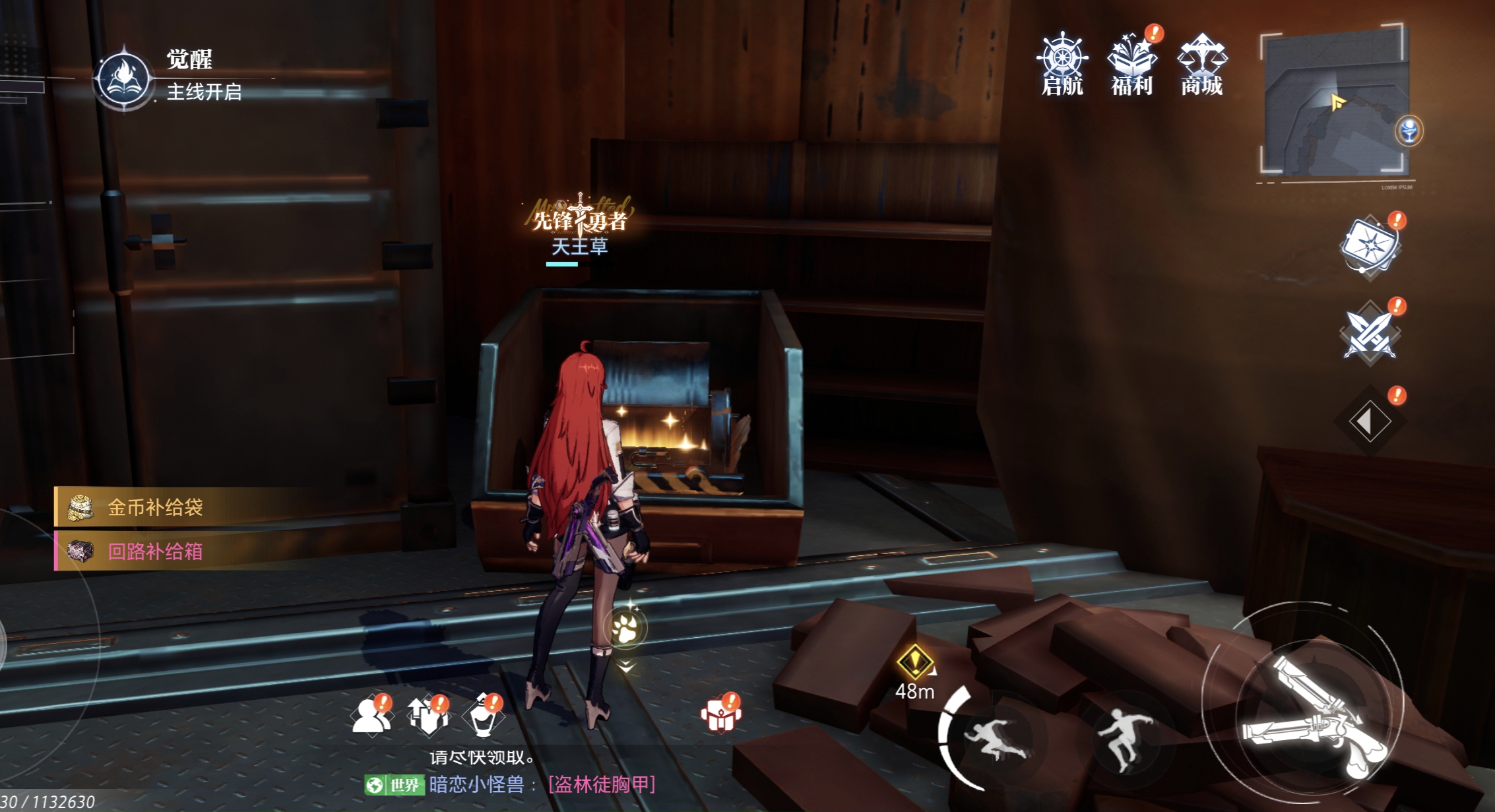 一路来到我图中的位置,在地图的右边铁箱里有个宝箱,旁边还有张卡牌,具体看我图中的位置。