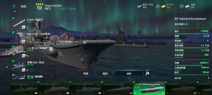 导弹:2×CJ-20(性价比之王)/2×SSM-700K海星(高配版CJ-20)/2×布拉莫斯(斩杀线更高,突防率不错)