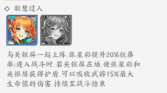 特点:曹操,甄姬,张星彩+关银屏 可互相激活上阵羁绊,大幅增加武将数值,张星彩+关银屏的组合羁绊技在前期大家阵容都未成型的情况下十分强力,大大增强了肉盾能力。