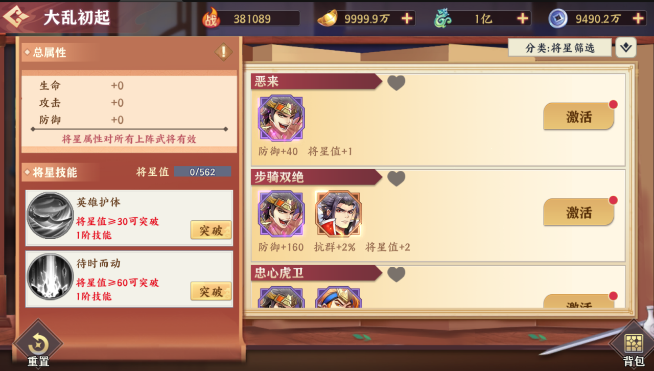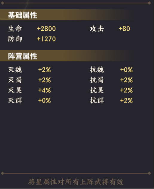 玩家可通过激活将星图鉴获取多样的全体加成属性