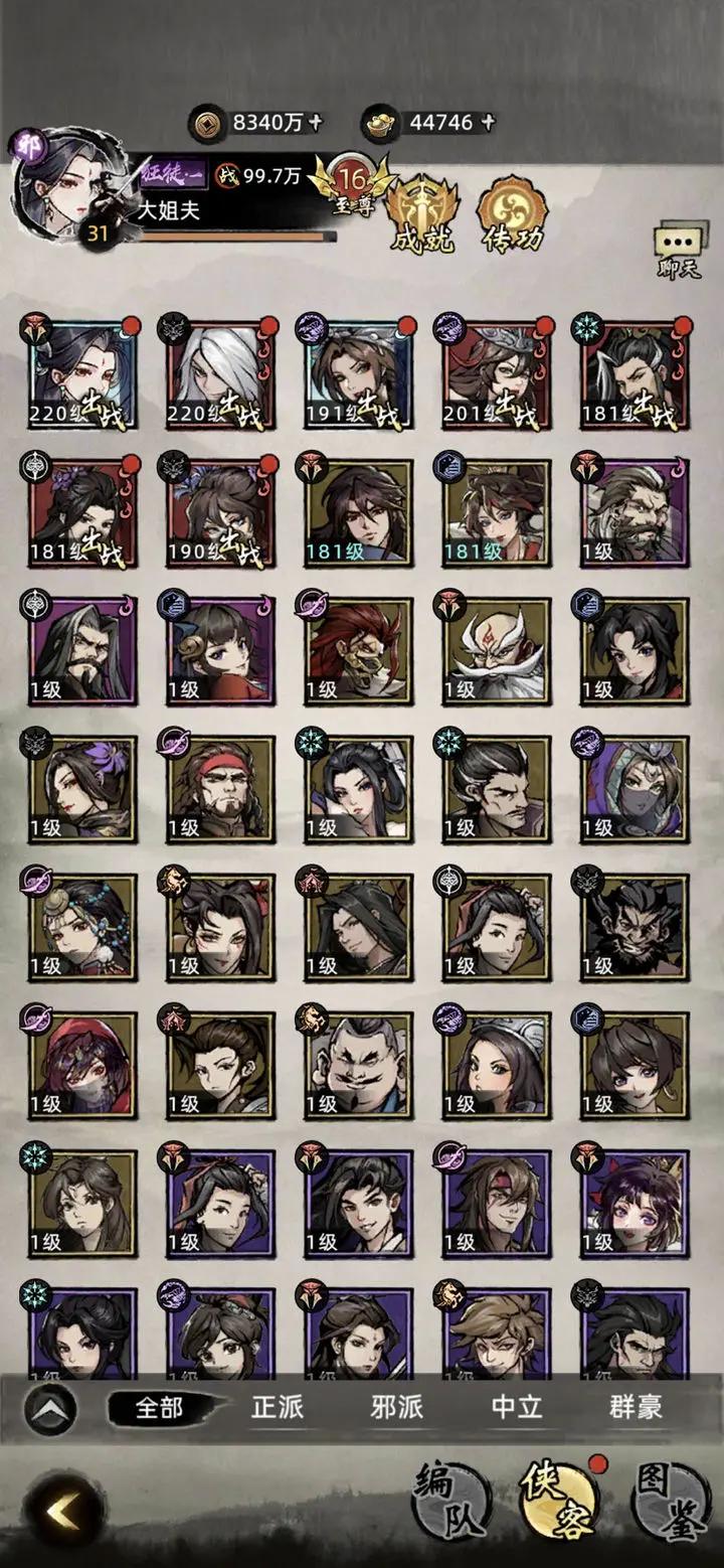 不好的点:品质低的侠客立绘重复,有点敷衍了,还是补齐比较好;还有些侠客明显想用金庸的名字,估计怕被版权起了个擦边的名字,像萧锋、洪七这些,不过可以理解;还有一点就让我不能接受了,好几个侠客立绘不符合原著,萧锋拿的九阶棍,萧千绝明明是个契丹人,一副汉人脸,希望美术多看看小说;