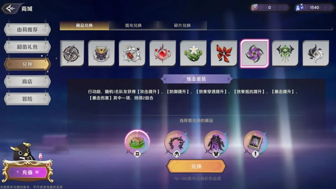 【炼金】套装可以提供15%的生命加成,并且每次行动前,都会给随机1名队友赋予随机1项增益状态(攻防提升、暴击提升、爆伤提升、效果穿透提升、效果抵抗提升),持续2回合。与【煅火】相比,【炼金】套装牺牲了一部分治疗量加成,但拥有很强的增益状态覆盖率,这就使得拉娜的配队更加灵活、可以搭配更多的队伍、适用于更多的场景。