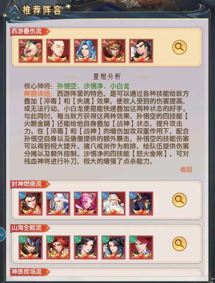 每个阵营都拥有自己的特点,而相同阵营的神将则在技能上有一定的衔接性,可以达到1+1>2的效果。