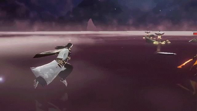 挥洒写意的向前进行4段攻击,第三段攻击具有一定的聚怪能力,第四段攻击造成击飞效果。