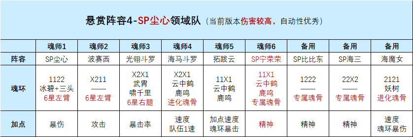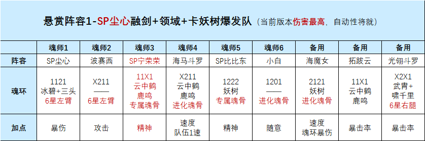 然后便是SP宁荣荣适配的3个队伍了,分别是SP尘心的融剑队,SP尘心的领域队和SP大雪的神器队,适配原因如下: