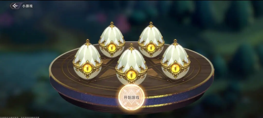 另外一个小游戏则是猜谜游戏,在上图所示的5个蛋中,只有一个是真的,之后在短暂数秒时间内,五个蛋的位置将进行一定的打乱,之后找到正确的选项则回答正确。值得一提的是,这些蛋的变换速度较慢,玩家们只要眼神始终追随正确的那一个,就是绝对不会出错的。