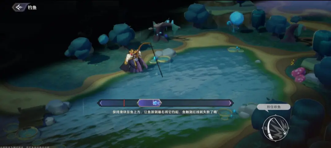在大世界探索的过程中,各位至尊还将感受到钓鱼的独特乐趣,等到鱼来到中央区域的鱼钩处,就可以与鱼展开一场拉锯战,玩家们需要保持滑块在鱼上方,让鱼游到最右将其钓其即可、需要注意的是,鱼触碰到左侧红线就会失败,大家还是要注意下浮块的位置,把握好距离节奏。