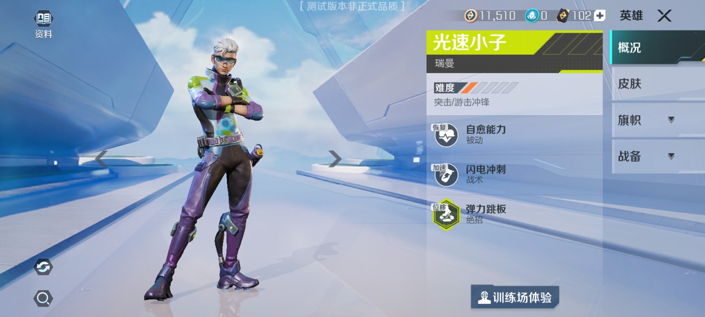 由于尖刃冲锋枪的高射速低续航,除非定位非常准,否则命中率非常低。因此搭配高机动的突击英雄,不仅可以多次快速近身爆发,而且可以迅速撤离战场为换弹争取时间,而其中光速小子所有技能都非常契合这个特点。