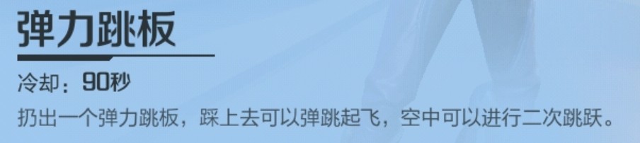 绝招弹力跳板:兄弟,你可曾见过一招从天而降的枪法?没错,这个技能就能满足。给你一个2段跳,直接更改方向,让敌人捉摸不透,同样是能进能退的一个技能!