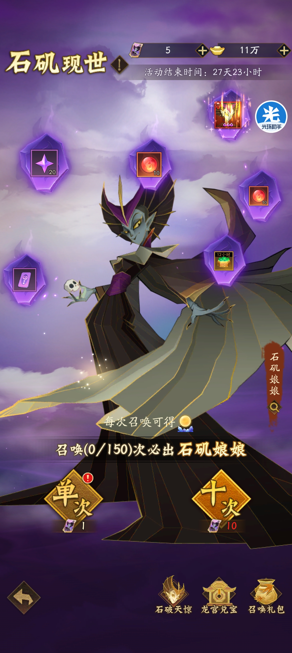 切记:这里是150抽才会必中一张神魔卡。