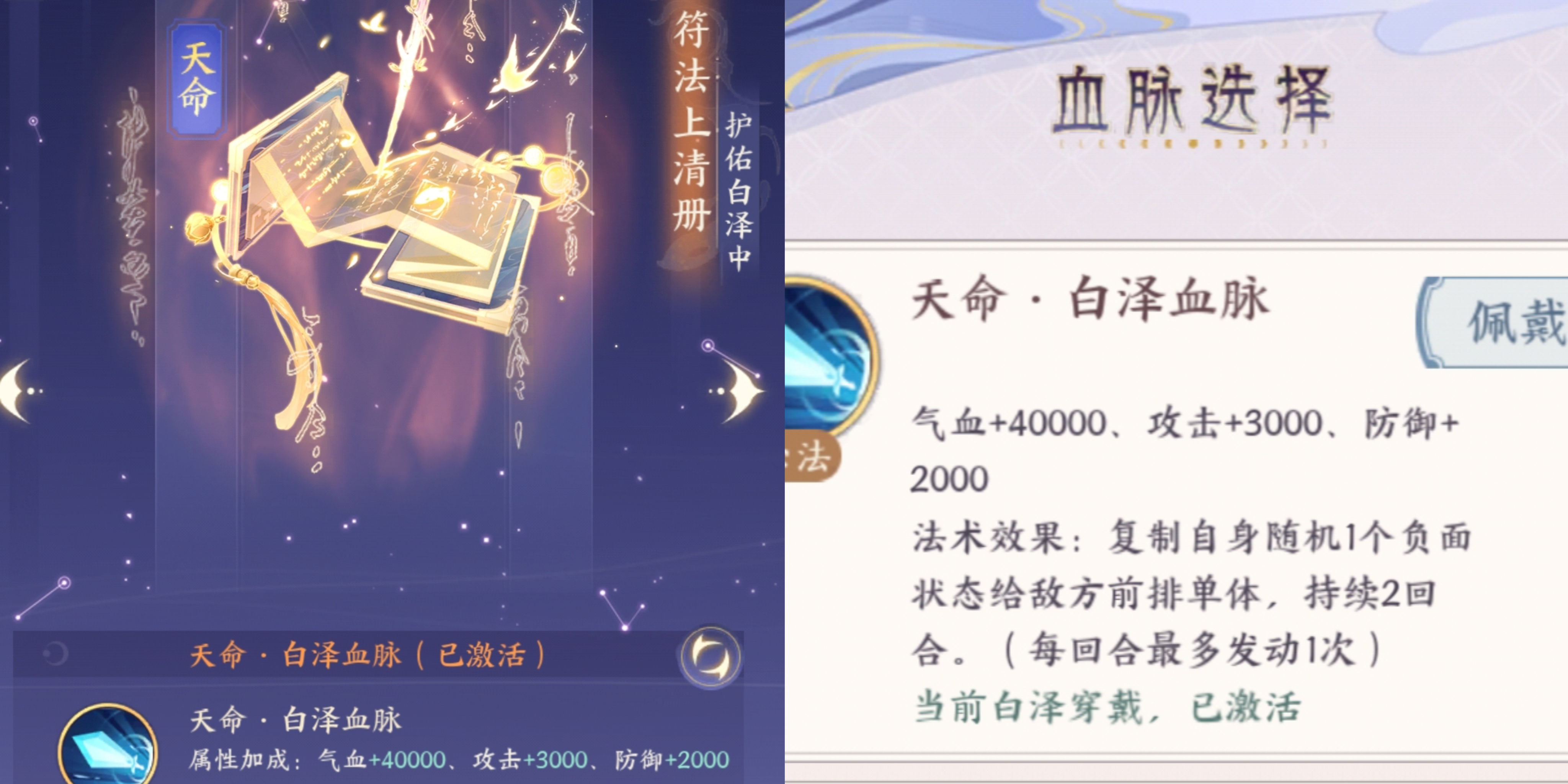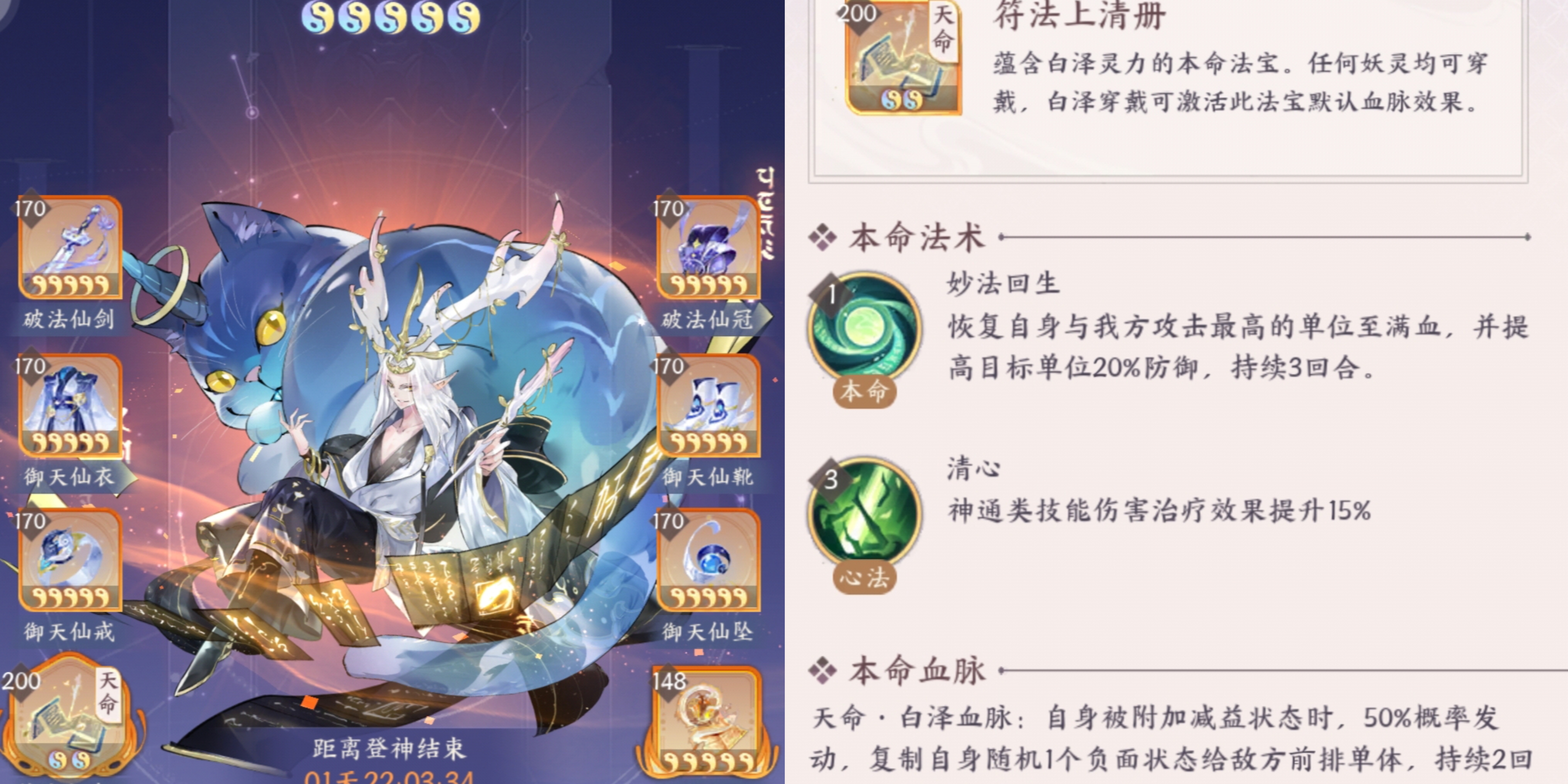 比如:白泽,白泽的本命法宝是【符法上清册】。