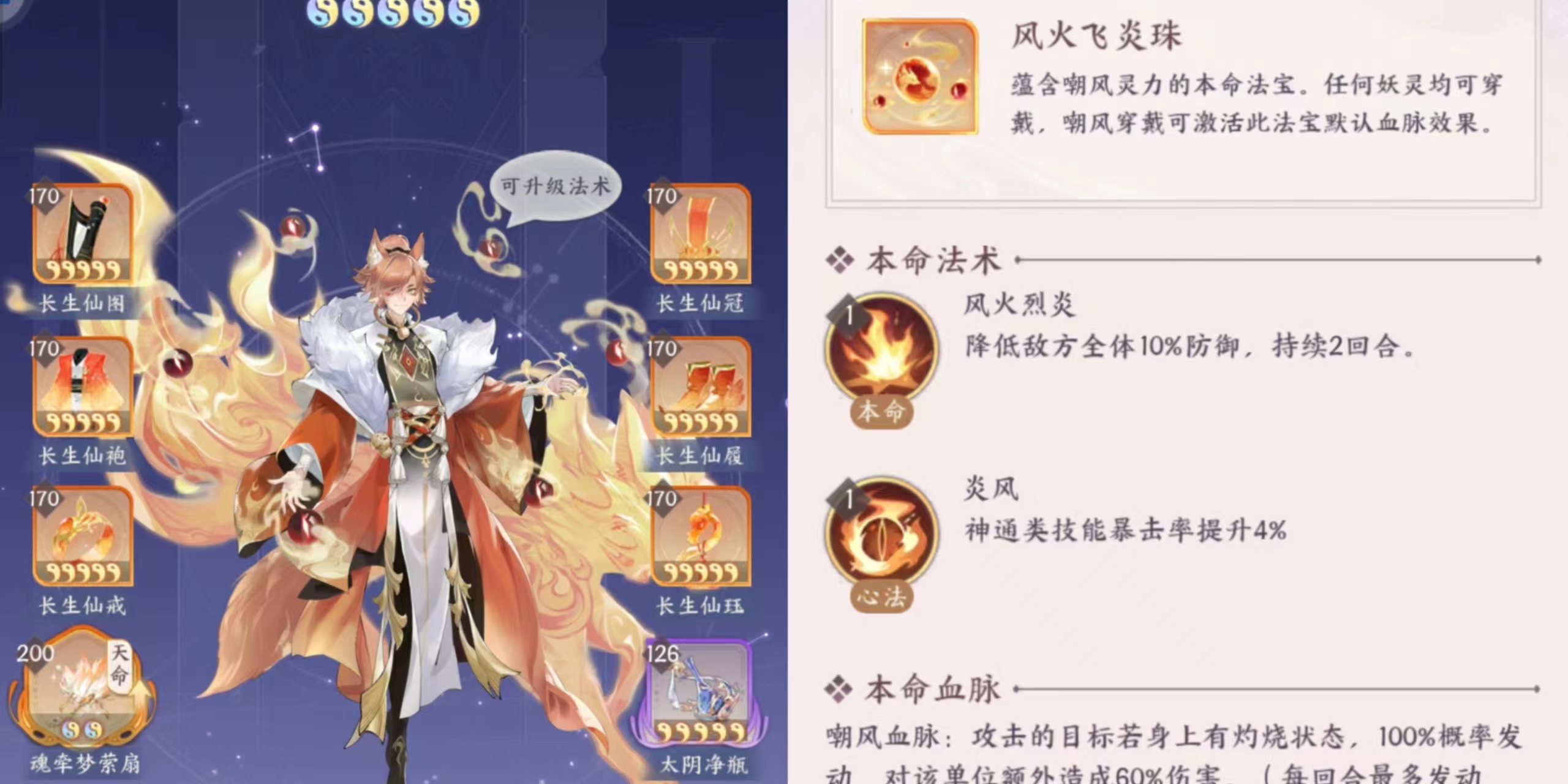 选择本命法宝的时候不单单看血脉效果。更需要看天赋效果如何。选择和妖灵相匹配的法宝才是致胜法宝。