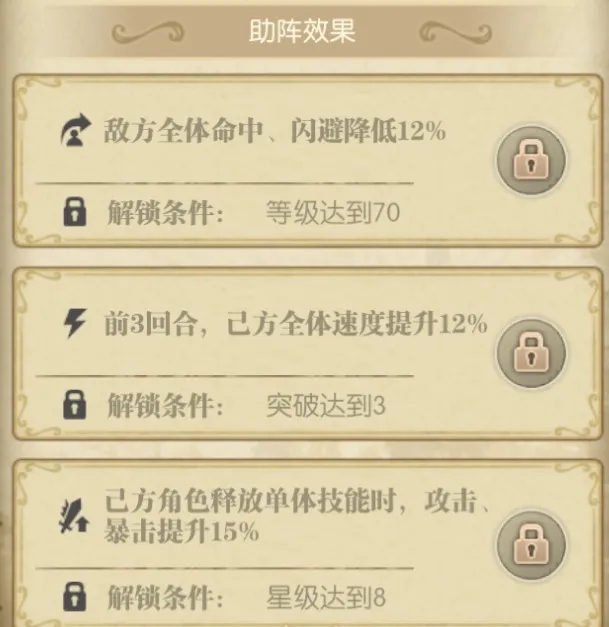 对平民来说,3星起步,8完整,属于比较全面且门槛较低的一个辅助角色