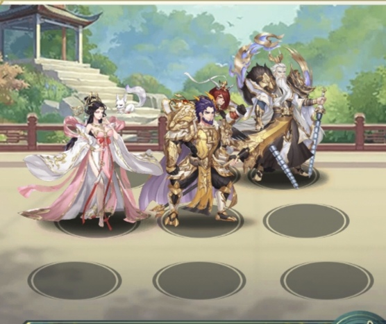 追击连打,畅快的高连击可轻易造成大量伤害,但是后期十分惧怕免疫追击的仙友。闻仲是队伍的核心及肉盾,搭配双追击,三追击仙友可轻易达成高连击。狐妖妲己在部分战斗场合可通过魅惑达成奇效。可作为阵容次核心。悟道后的黄飞虎可替队伍承担大量伤害。本阵容伤害足够高,但是控制方面比较缺乏,比较惧怕一些控制队。站位图如下: