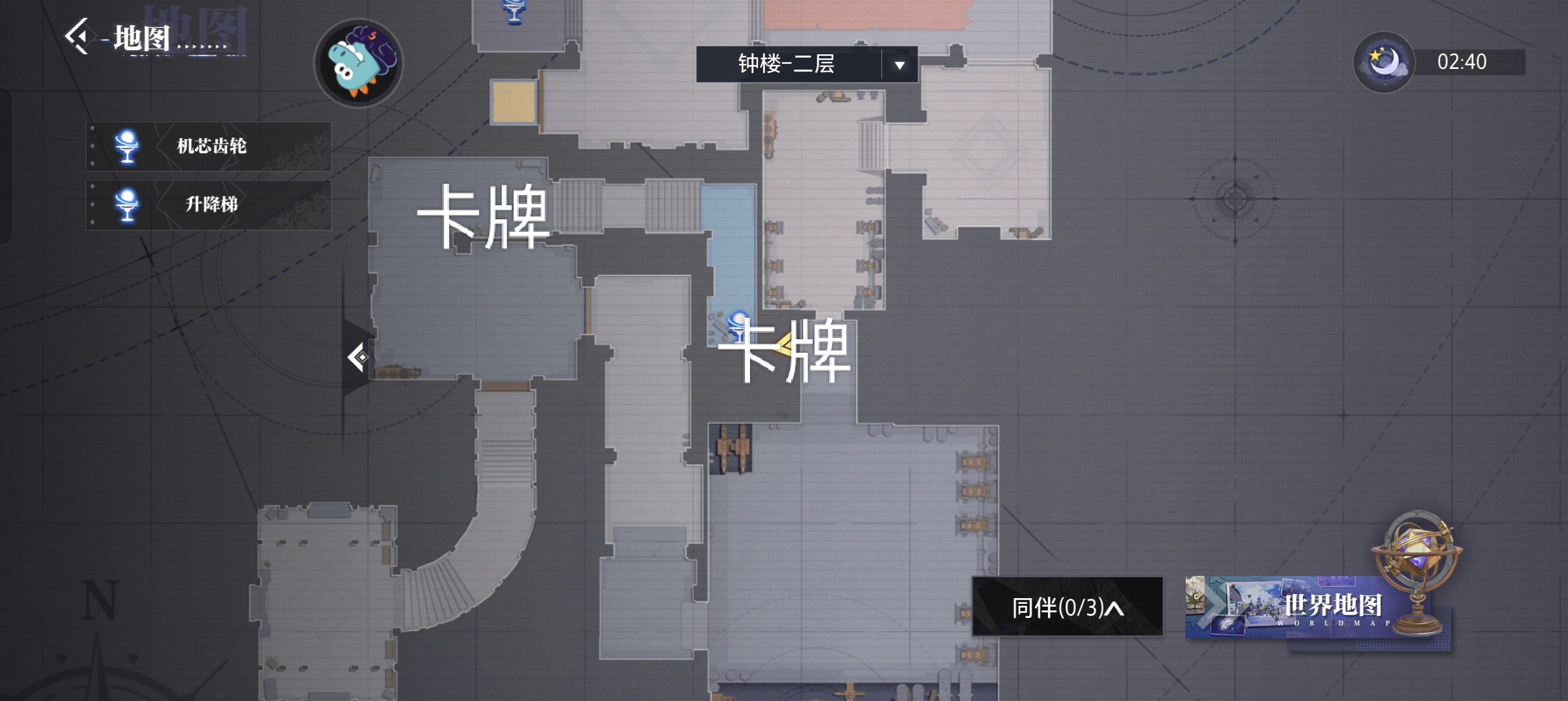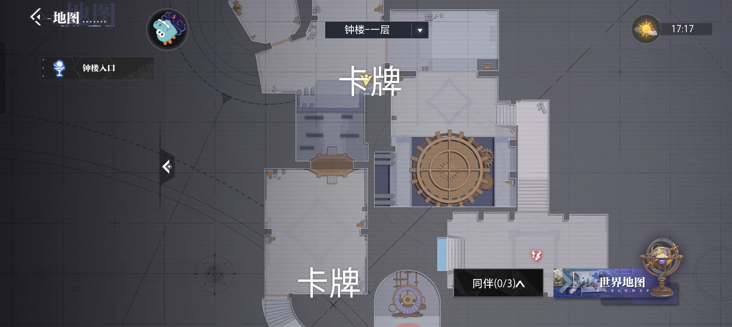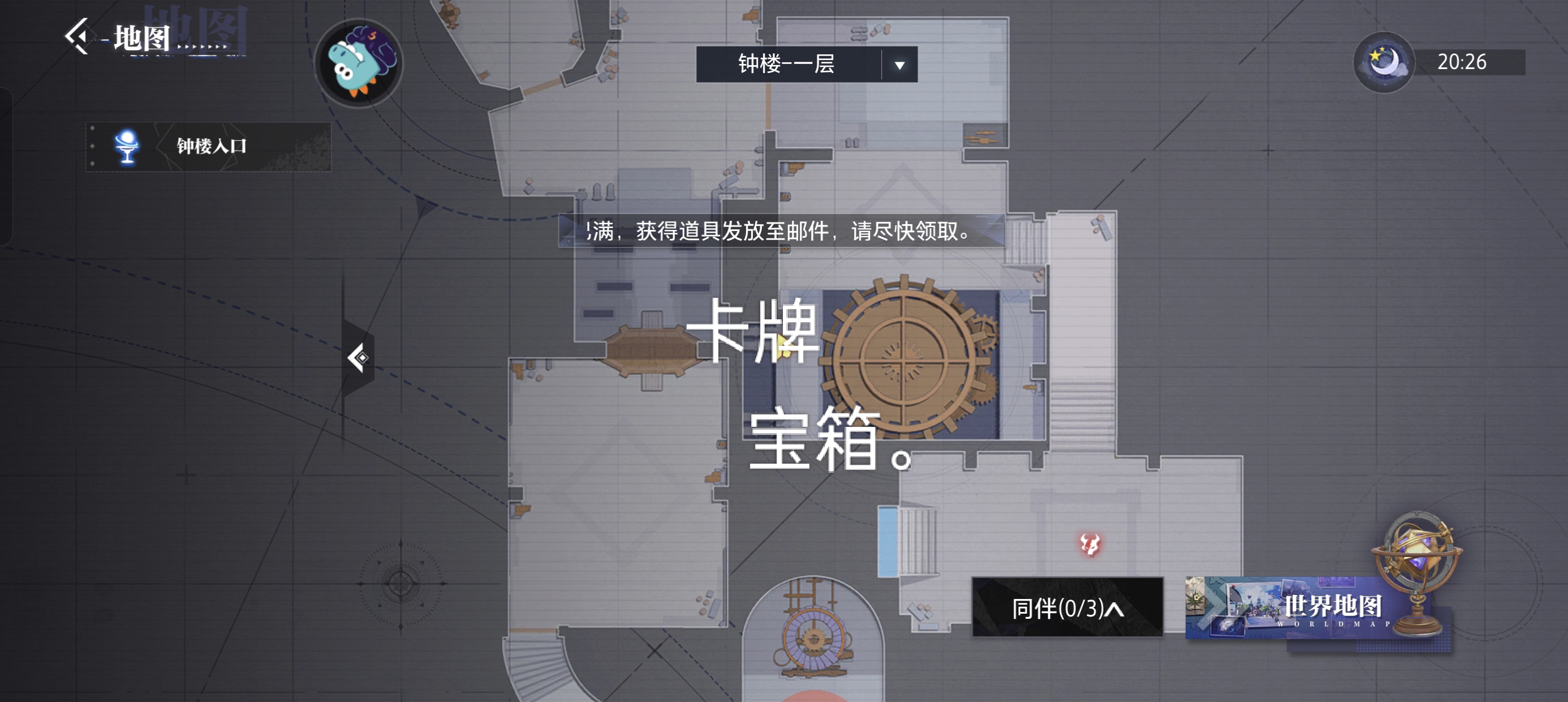 【钟楼一层】区域一共是4张卡牌+1个宝箱。