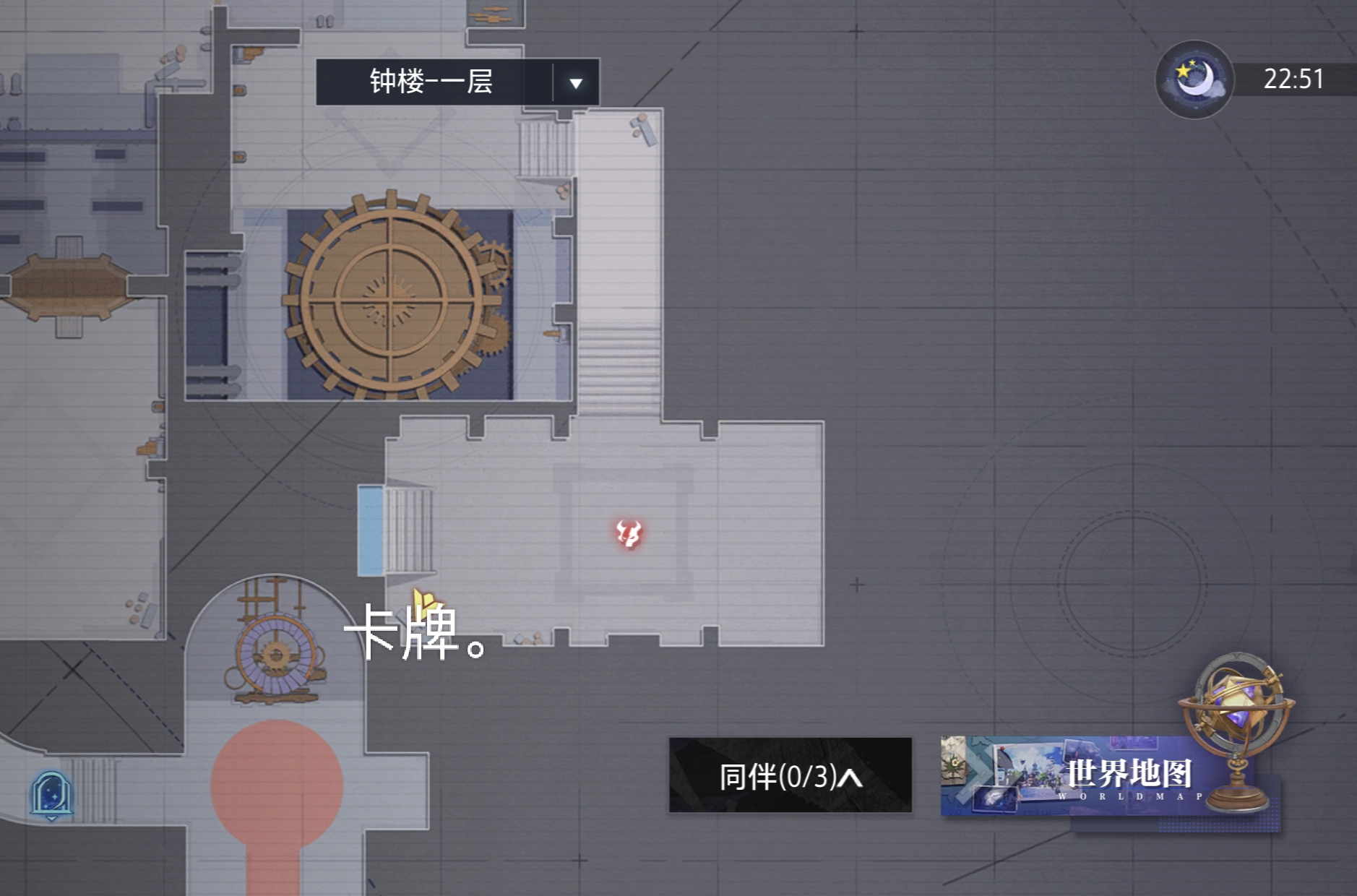 ⭐第13张卡牌和第6个宝箱的位置也在钟楼一层。