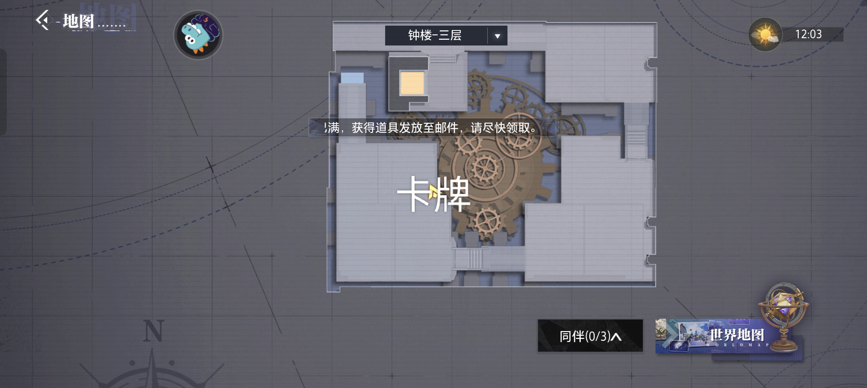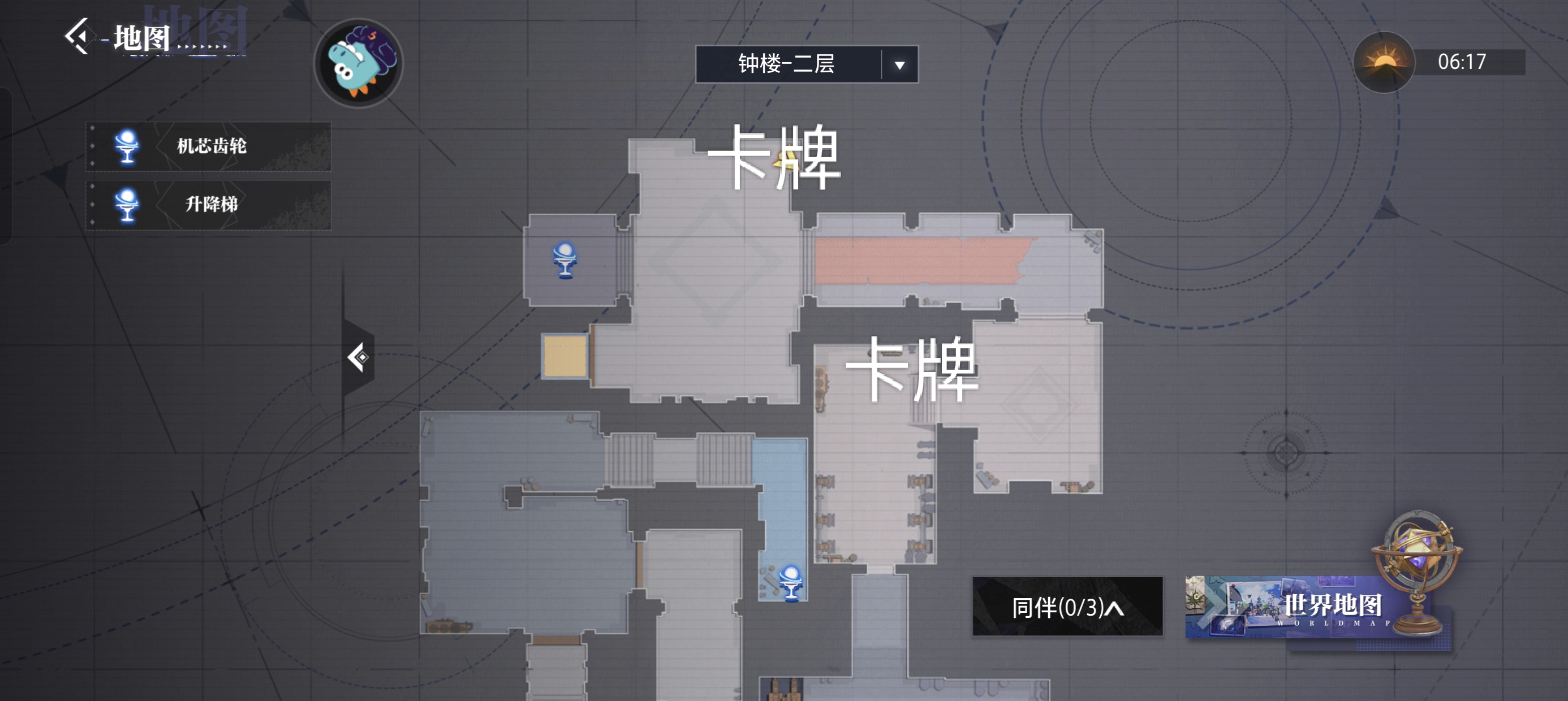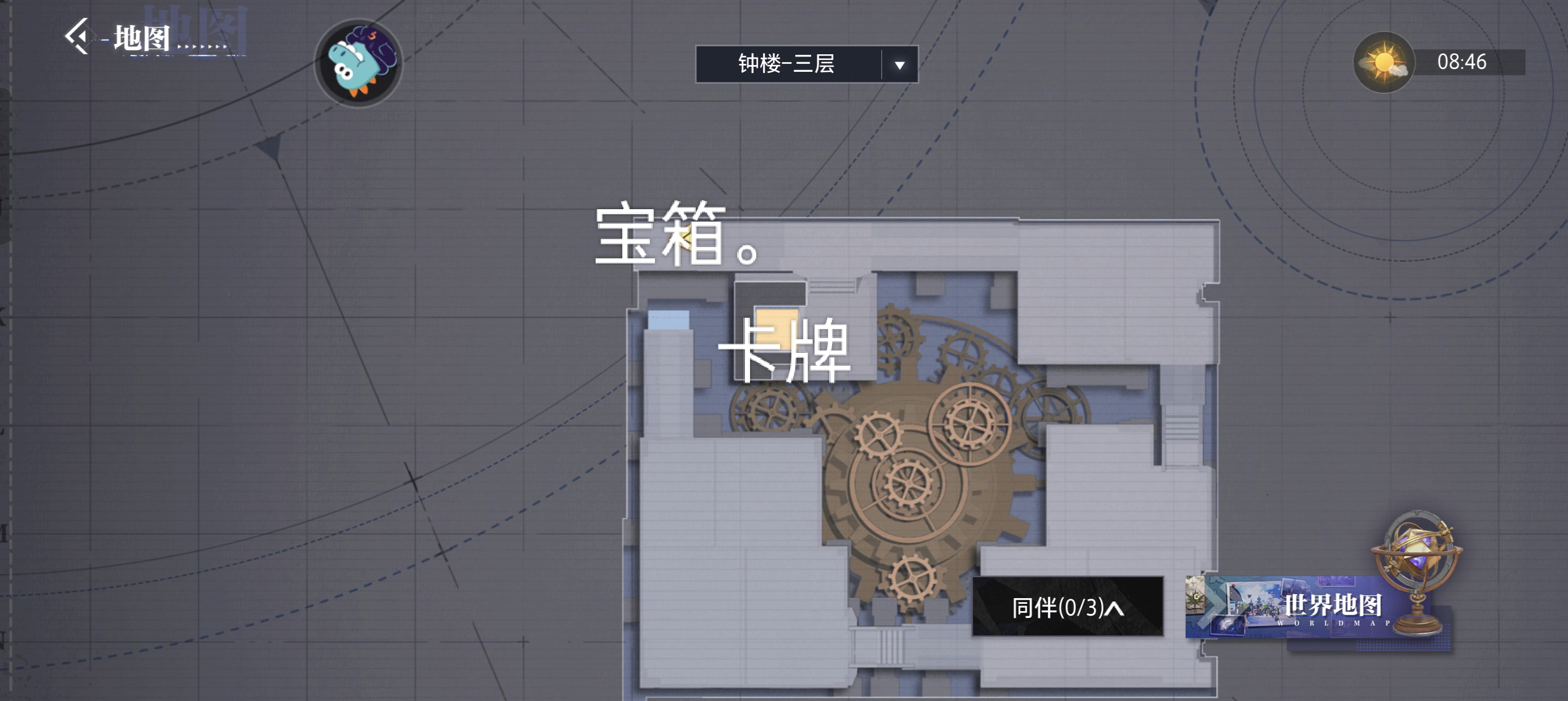【钟楼三层】区域一共是2张卡牌+1个宝箱。