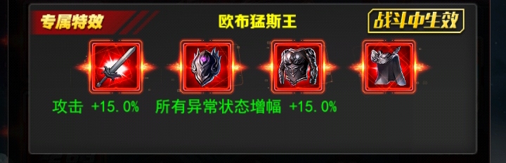 +12 噩灵之愿上阵出场时,欧布猛斯王对己方全体施加<噩愿>效果,持续15回合。上阵出场