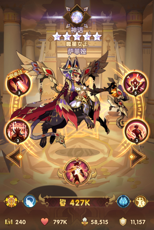 主动释放大招,会对全场敌人造成高额伤害。会因场上发生的控制效果增加眩晕控制,会因敌方英雄对SP女王施加的减益效果造成额外debuff。