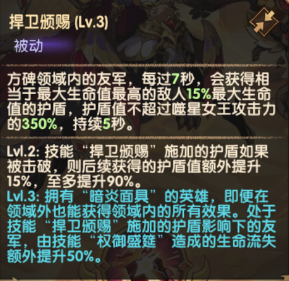 60刻印拥有面具的英雄,在领域外也能获得领域内的所有buff加成。4技能的护盾存在的友军,sp领域技能造成的生命流失额外提升。