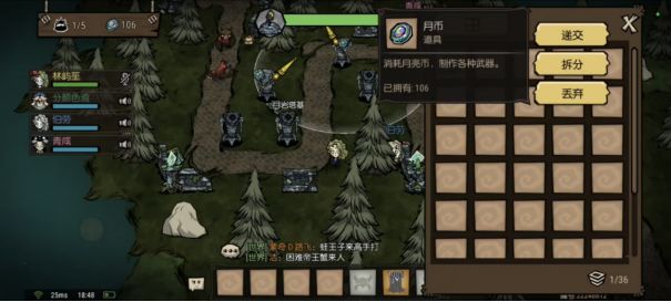 当我们击败怪物后就能获得月币,月币是制作武器的材料,各位冒险家可以制作各种武器插入月岩塔基进行防守!