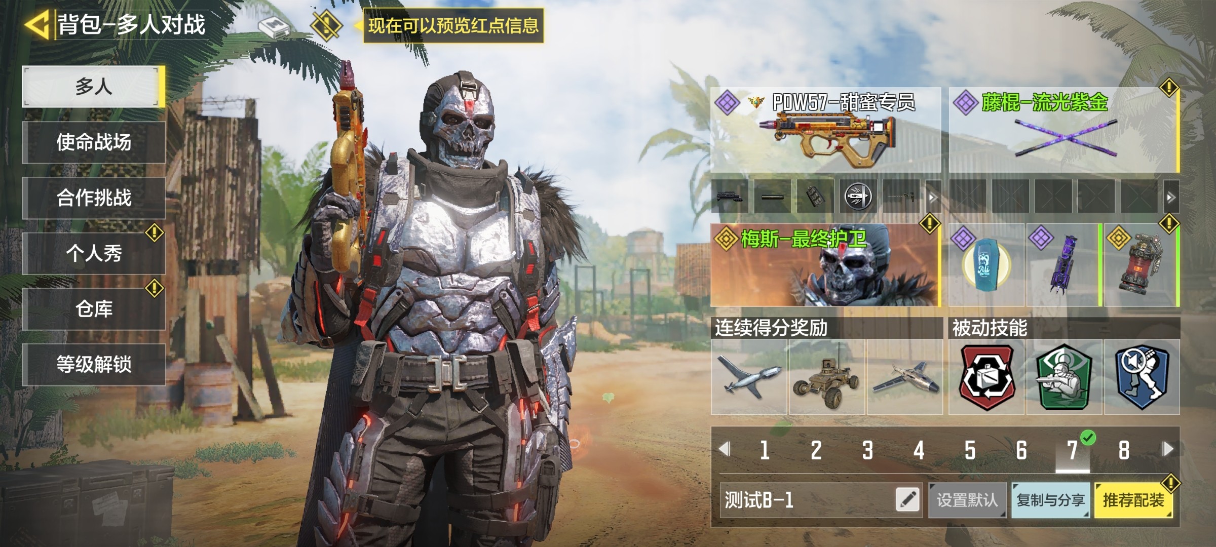 枪械更加适合中距离作战,由于使用配件后开镜时间较长,因此建议多提前开镜预瞄!而由于弹药充足,多打提前枪也非常不错,在有掩体的情况下可以正面钢枪!副武器建议携带藤棍等4连击武器游走即可!