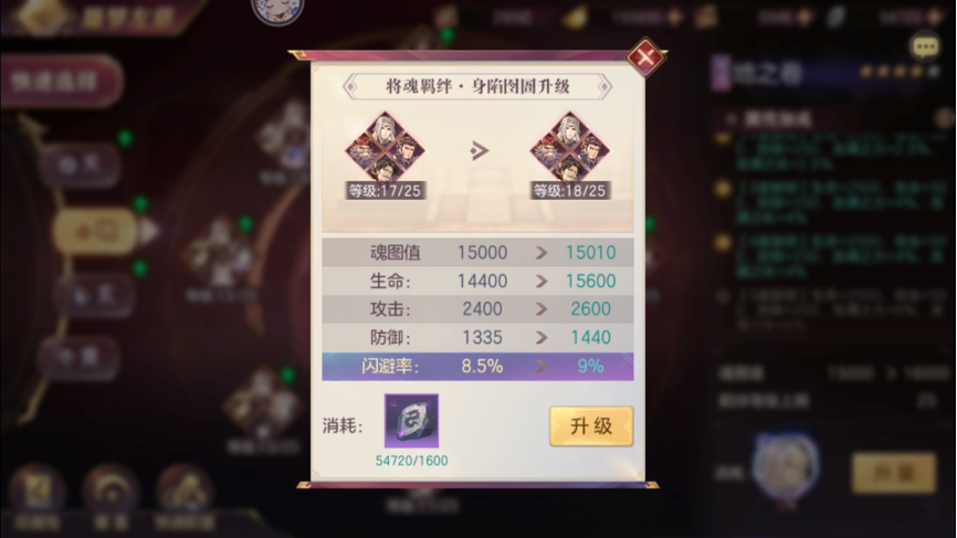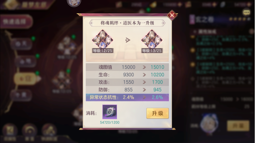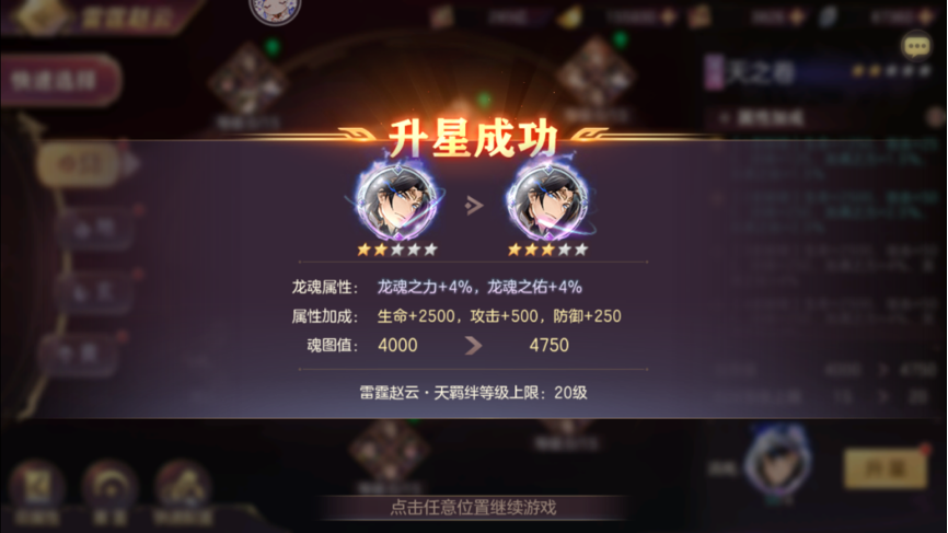 第二部分为使用龙纹石可以升级四卷当中的将魂羁绊,获得一些抗灭、暴击、抗暴、龙魂伤害增减以及其他属性。