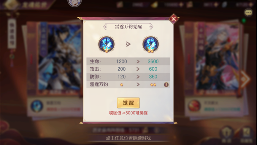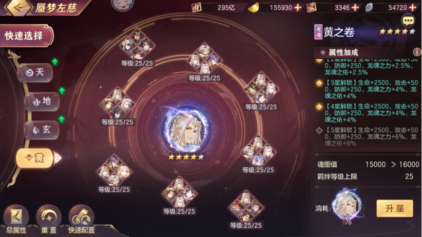 龙魂养成系统主要由于三部分组成,第一部分为使用无双龙魂升级天、地、玄、黄四卷,可以获得龙魂之力、龙魂之佑和少量三维属性。