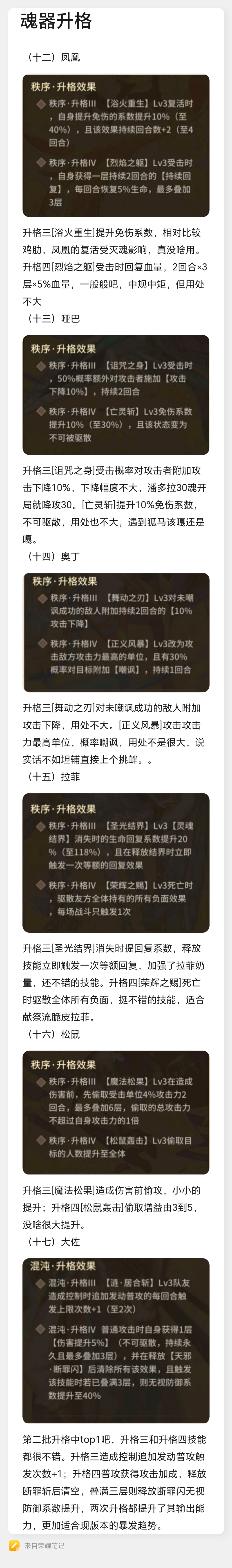 [魂器升格汇总]当前版本魂器升格汇总不归星发布于 2023-07-22关注这里为大家总结了一下当前版本的魂器升格及分析泰坦、火龙、瓦妹、冰龙、潘神、火龙 海拉、雷神、暗主、赫拉、孙悟空 凤凰、哑巴、奥丁、拉菲、松鼠、大佬 魂器升格相关注意事项 以上仅代表个人观点,希望对大家有所帮助。