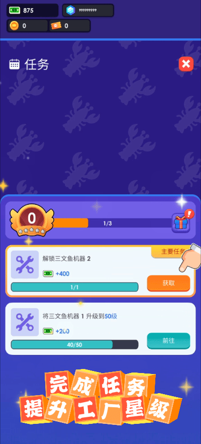 🎮想要壮大工厂就要积极的完成游戏里布置的任务,提升工厂的星级。当工厂的星级达到三级时可以开设扇贝生产线,多一条生产线就多一个赚钱的途径。
