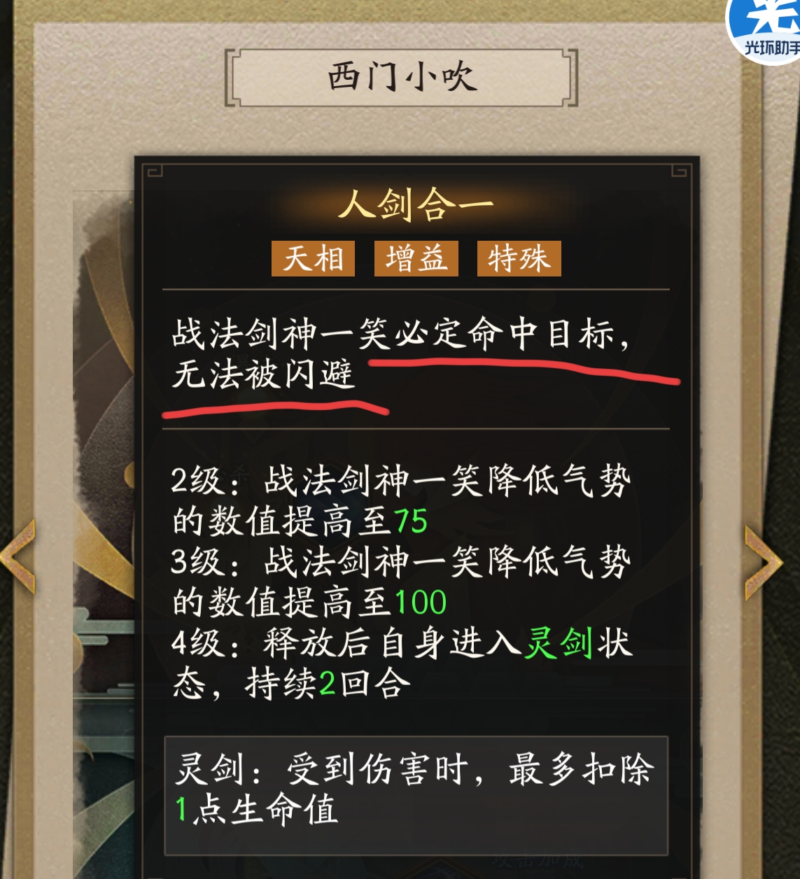 特别有意思的事:剑灵的必定闪避与小吹必定命中,两种属性相遇,结果就不一样了。