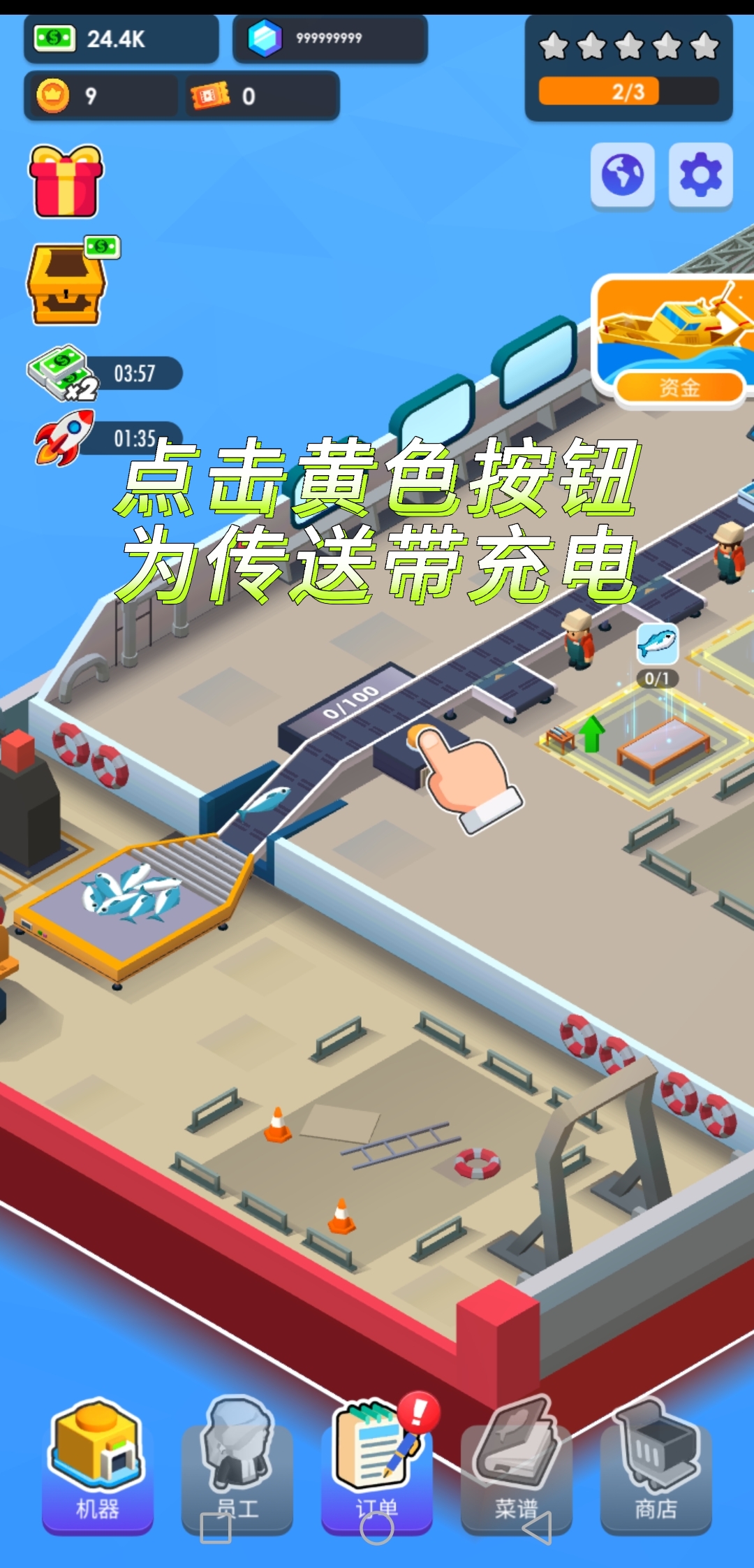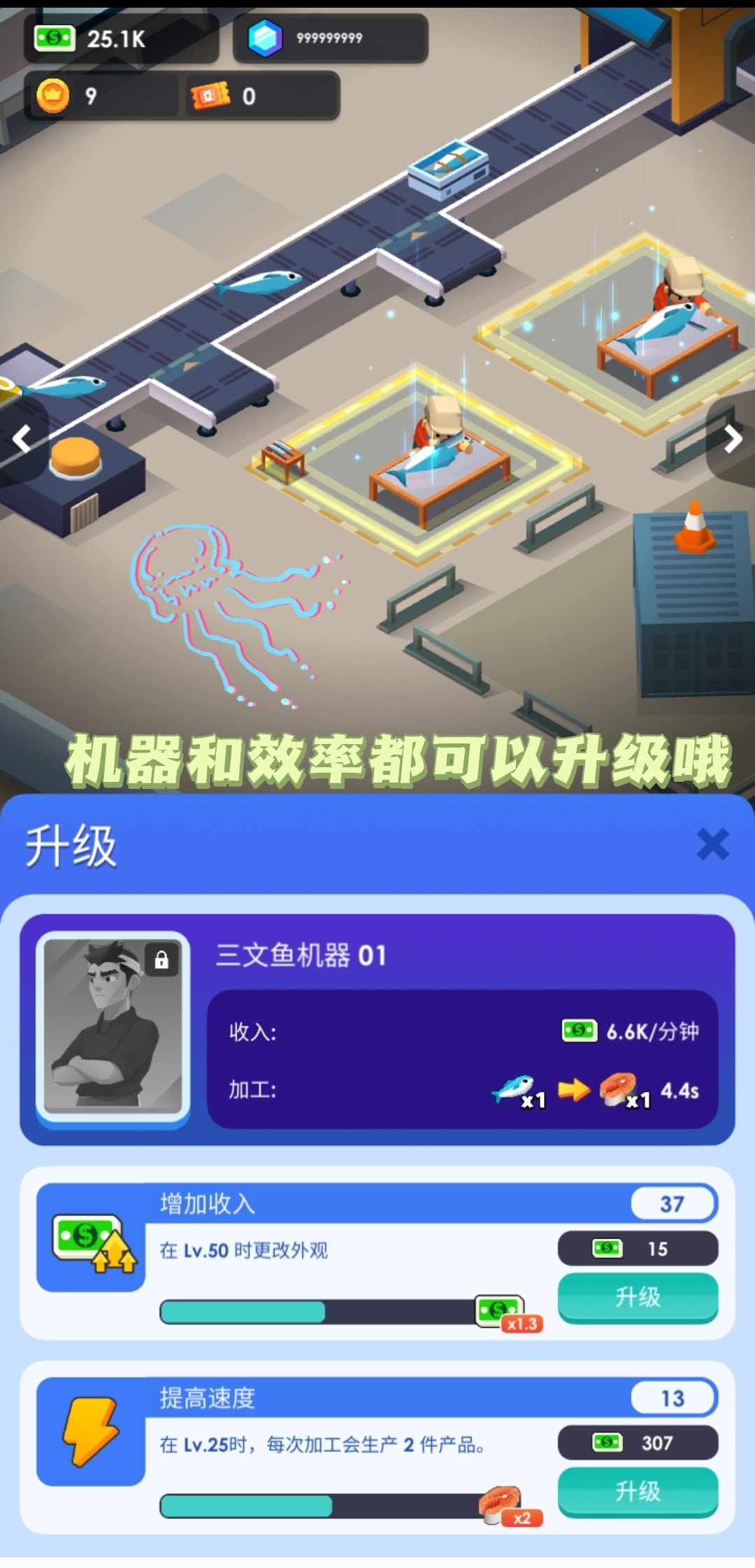 我们的工厂就建立在一艘大船🛥上,大船停靠在海🌊上,创建一个工厂就必须从零开始,工厂的经营也将从我们的原料捕捉海鲜🐟开始,在这片无垠的海洋中,遨游着各种各样的鱼类🐠,我们首先要派遣渔船和渔夫去我们的海里捕捉到小鱼,然后通过一台起重机🏗吊起来小鱼并将小鱼传送到三文鱼制造的机器和工人👤手中,对我们的鱼类进行加工,工人将加工好的鱼类包装好再放入我们的仓库进行销售💰,卖出去的三文鱼我们就可以获得大量的现金💵~这就是我们海鲜工厂完整的一条生产销售链了~在运输的过程中不要忘记为我们的传送*电💡哦~看似简单,其实啊经营起来真的还是有难度的~也会遇到各种各样的问题,比如我们要对传送带的速度、制造三文鱼的机器还有工厂的工人进行升级,在经营的过程中稍微出现懈怠都有可能损伤到我们的利益~所以我们要好好维护和升级工厂的的机器和工人,这样可以帮助我们建造增加更多额外的收入哦~