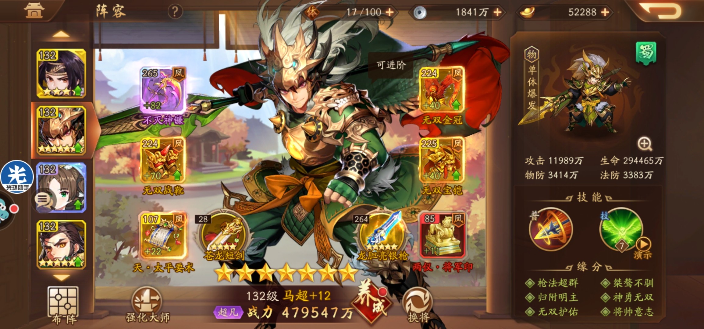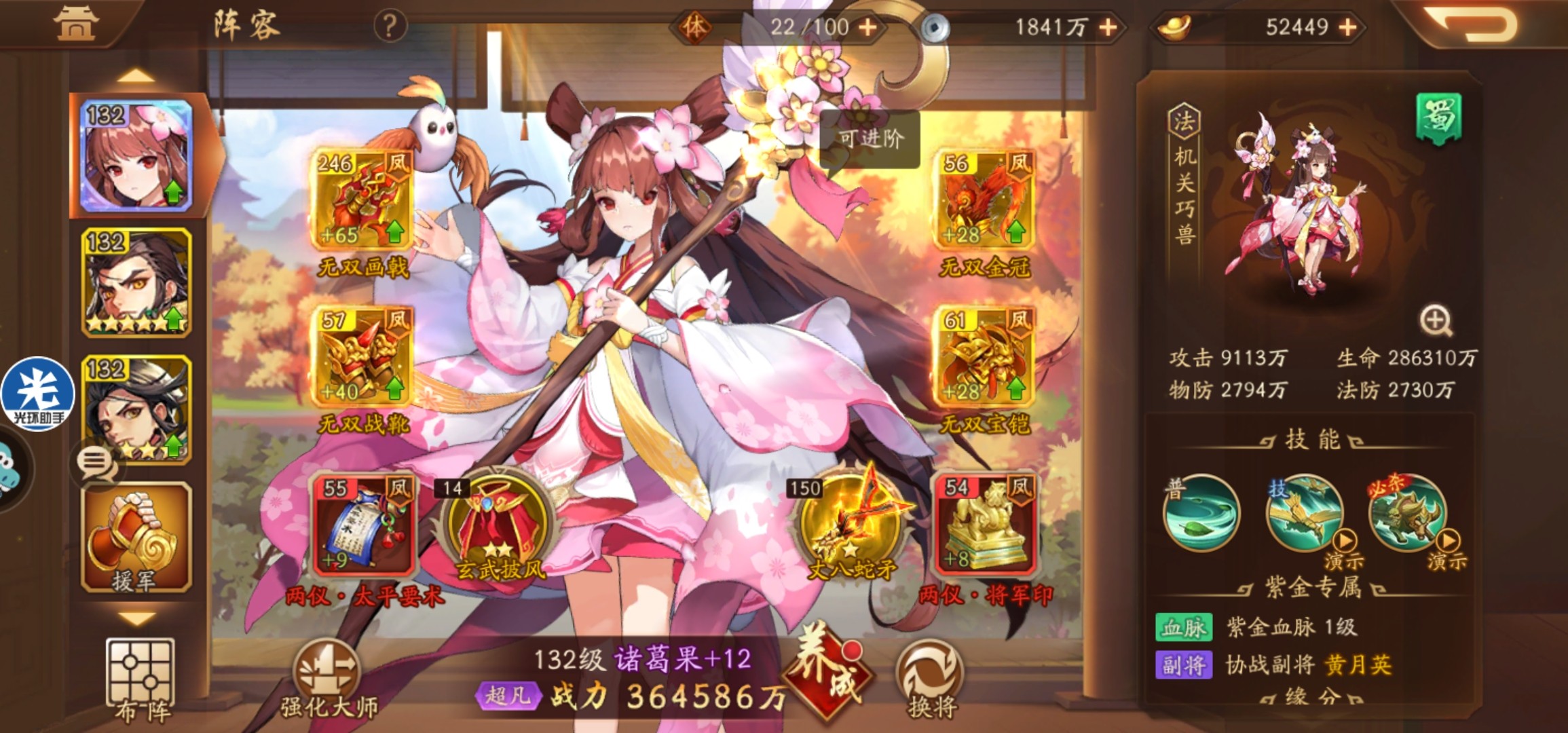 我下三星黄月英换零星诸葛果协战从220亿涨到230亿了,提升明显。诸葛果的变装实在是太好看了,必换。