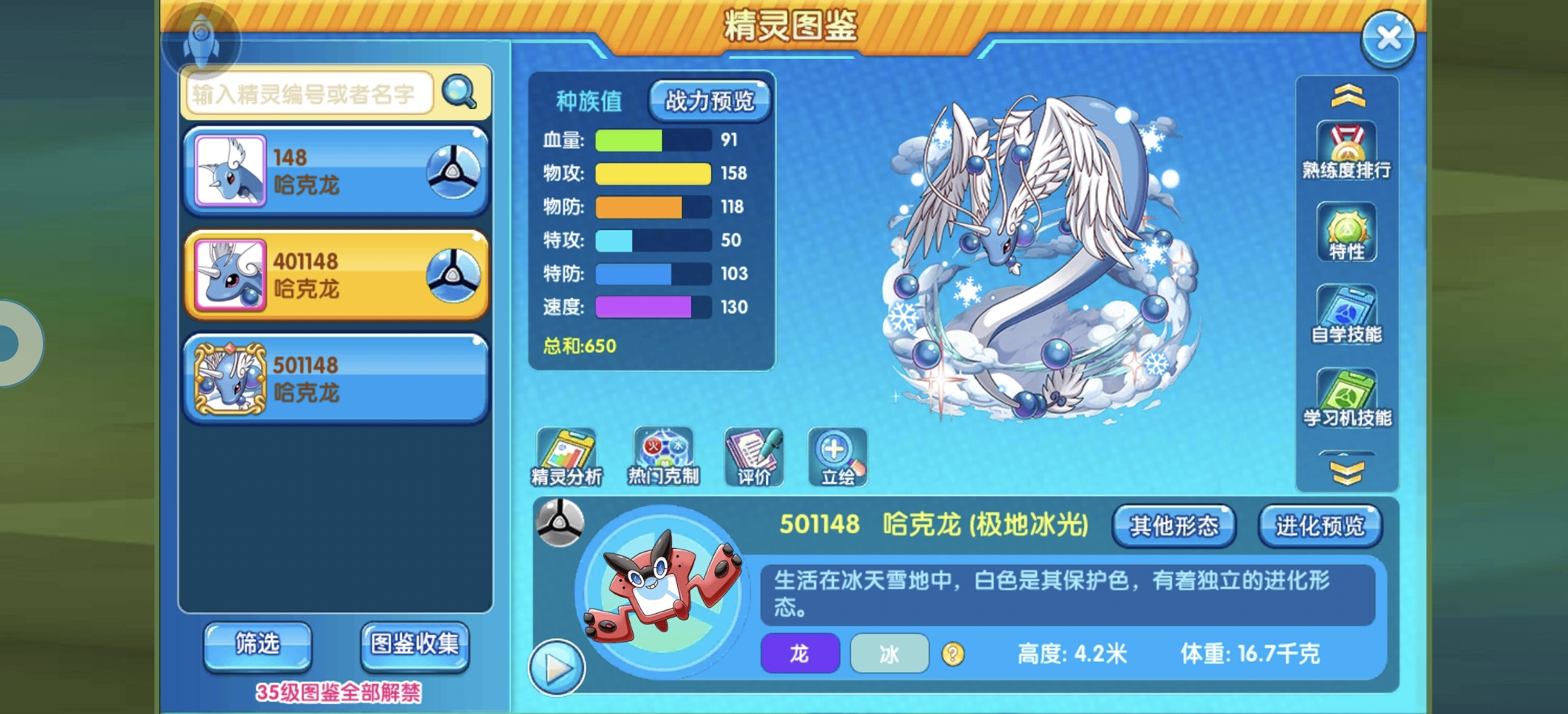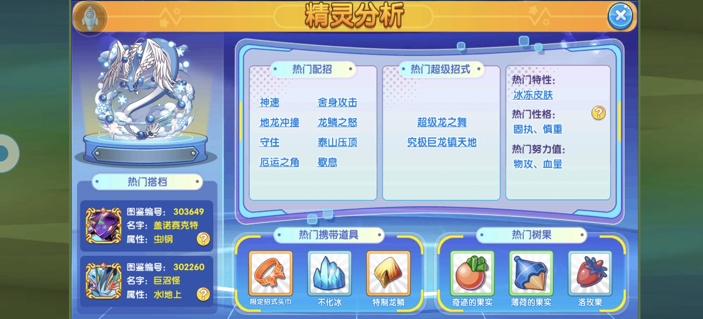 另外一个冰系颜值宠就是闪光哈克龙,这只精灵在刚出的时候有一段时间受到了不少玩家的青睐,但是后面渐渐淡出了人们的视野,这次攻略我就来谈谈它。